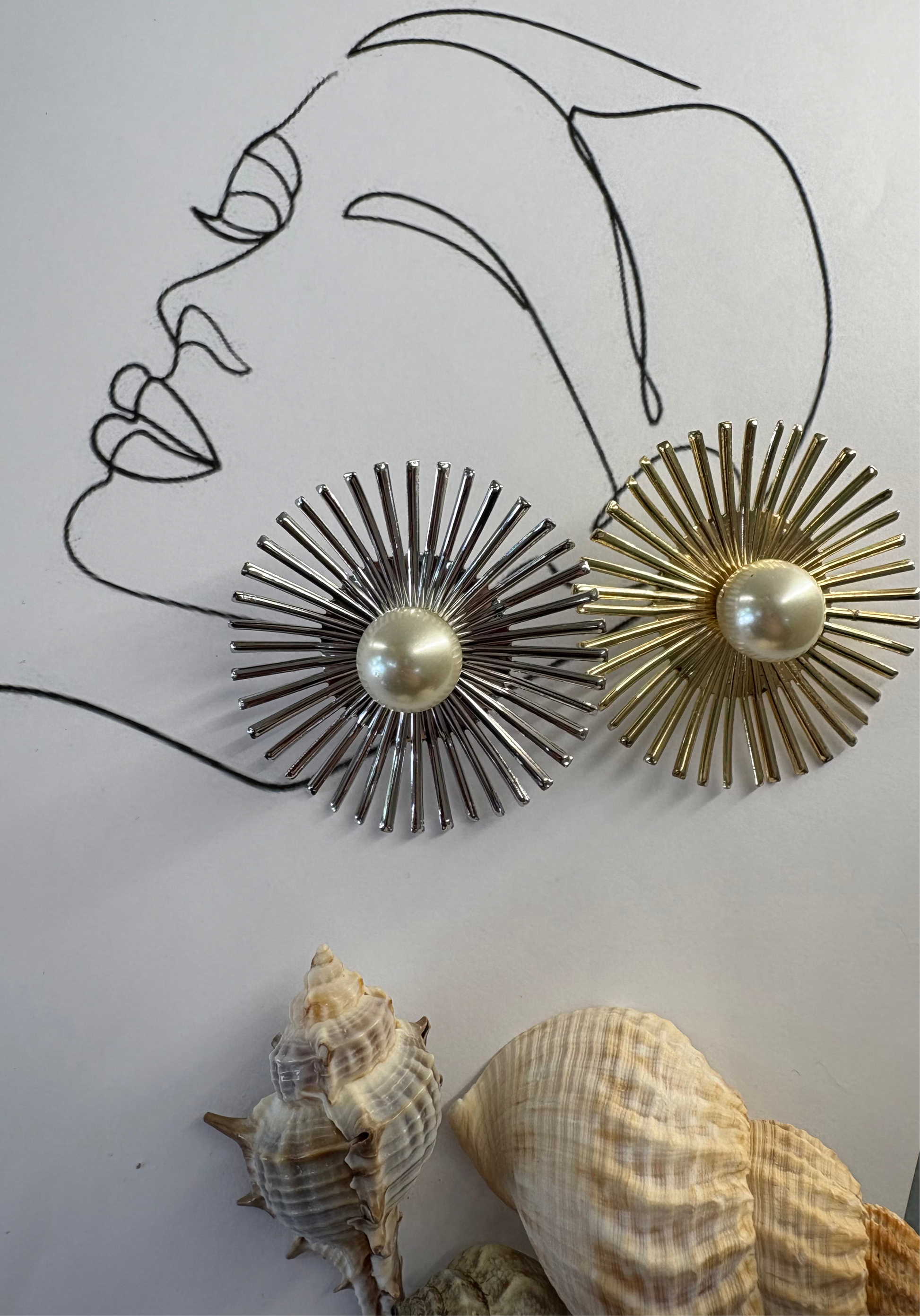 Με design εμπνευσμένο από τον ήλιο, λεπτές μεταλλικές ακτίνες και μια λαμπερή πέρλα στο κέντρο, αποτελούν ένα εντυπωσιακό statement για κάθε περίσταση. Διαθέσιμα σε χρυσό και ασημί χρώμα.
