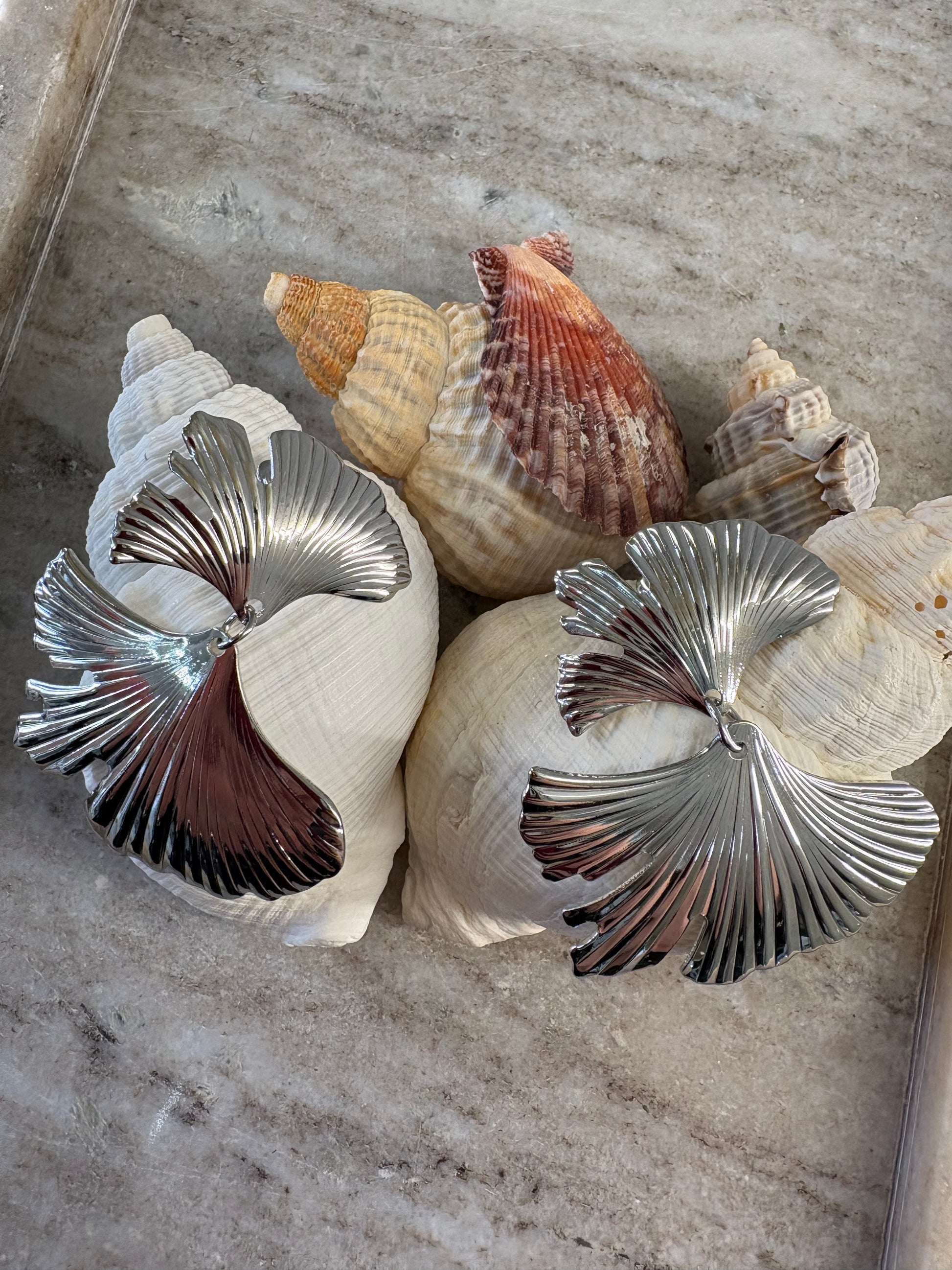 Σκουλαρίκια “Windleaf” Μεγάλα Ασημί Βεντάλια – Pnoe Studio