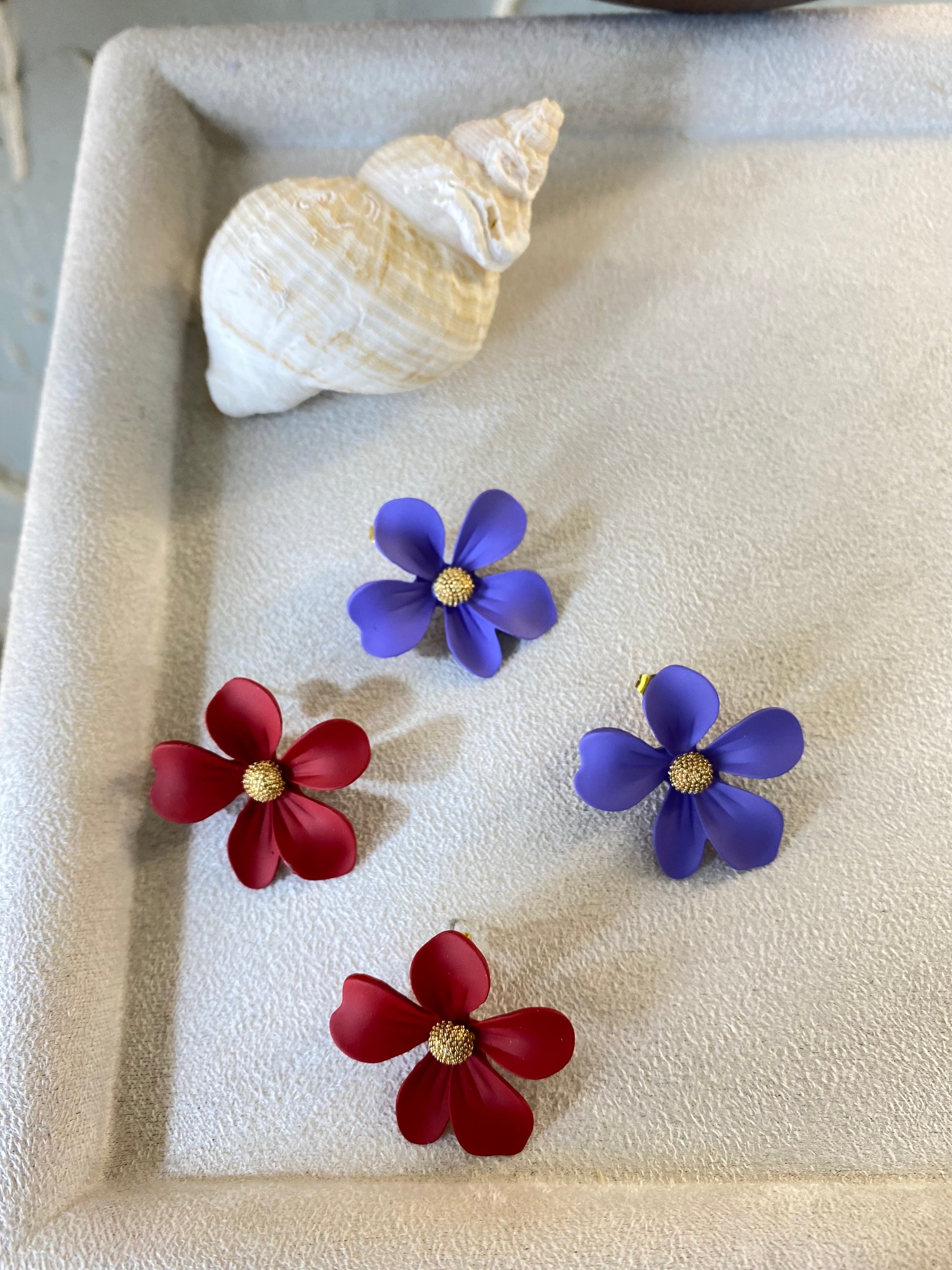 Σκουλαρίκια Λουλούδι "Belle & Ariel" – Ατσάλινα, Κόκκινο ή Μωβ, Pnoe Studio