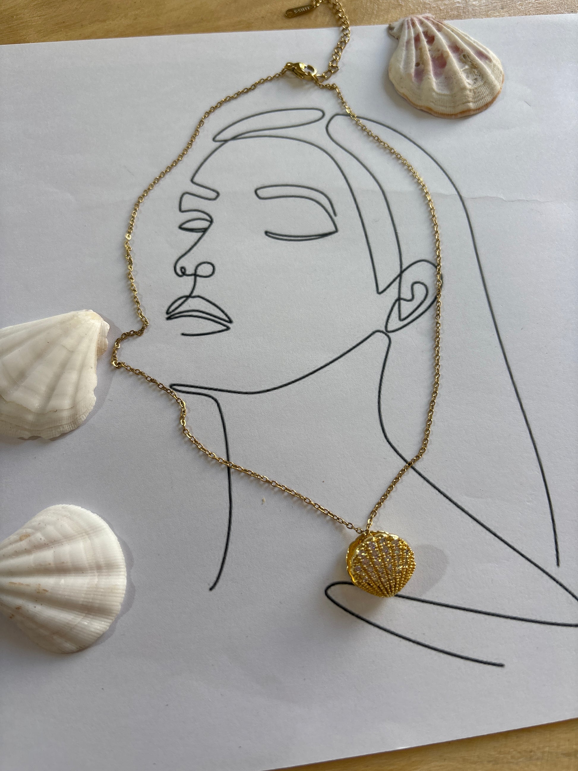 Το κολιέ Σέριφος με χρυσό κοχύλι είναι εμπνευσμένο από τη μαγεία των ελληνικών νησιών και τη λάμψη του καλοκαιριού. Η διακριτική ατσάλινη αλυσίδα και το εντυπωσιακό χρυσό μενταγιόν-κοχύλι προσδίδουν μοναδικό στυλ και κομψότητα σε κάθε σου εμφάνιση. Ιδανικό για καθημερινές αλλά και πιο ιδιαίτερες στιγμές.