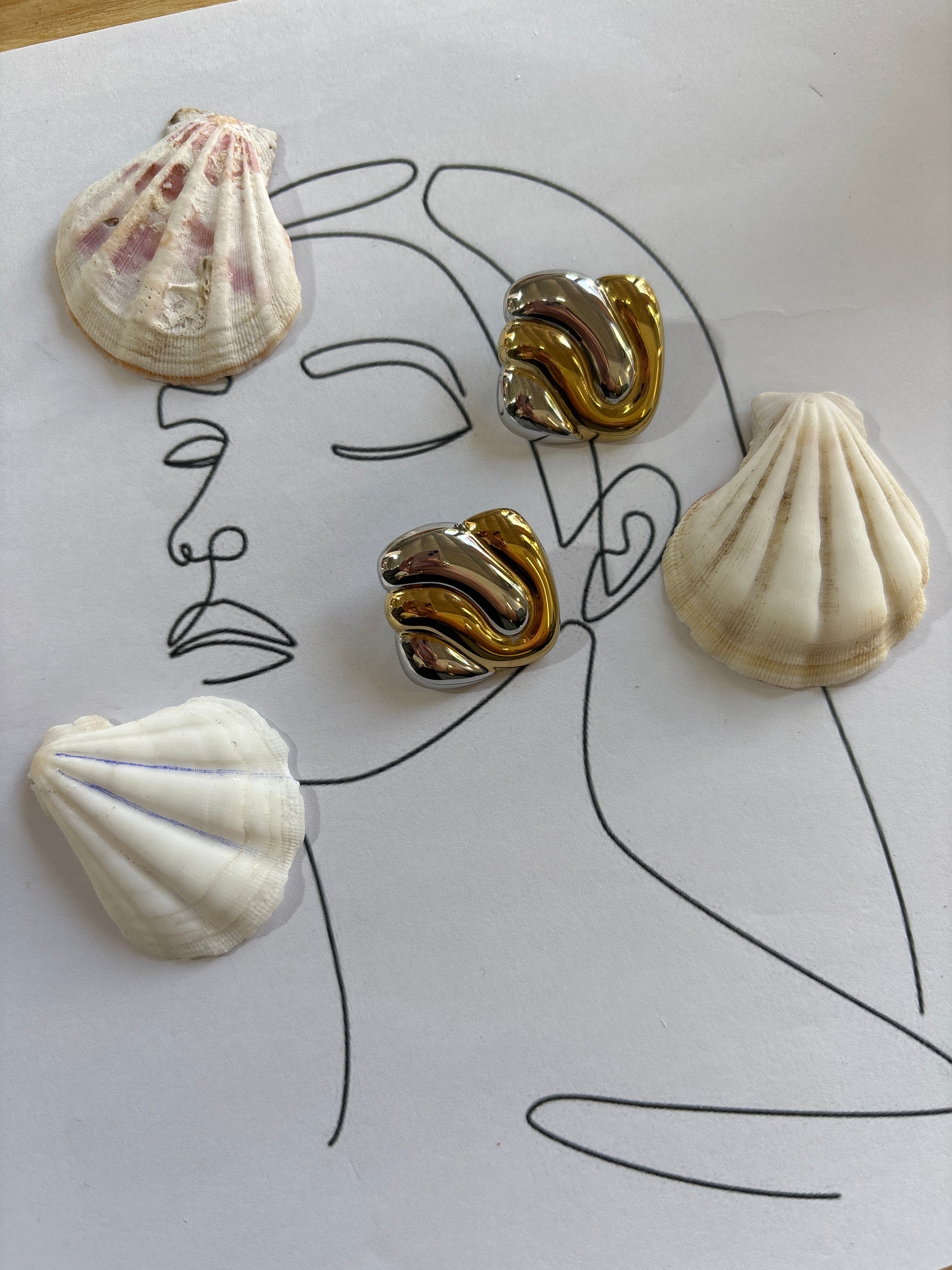 Σκουλαρίκια "Κέρκυρα" Δίχρωμα Ατσάλινα – Χρυσό & Ασημί | Pnoe Studio