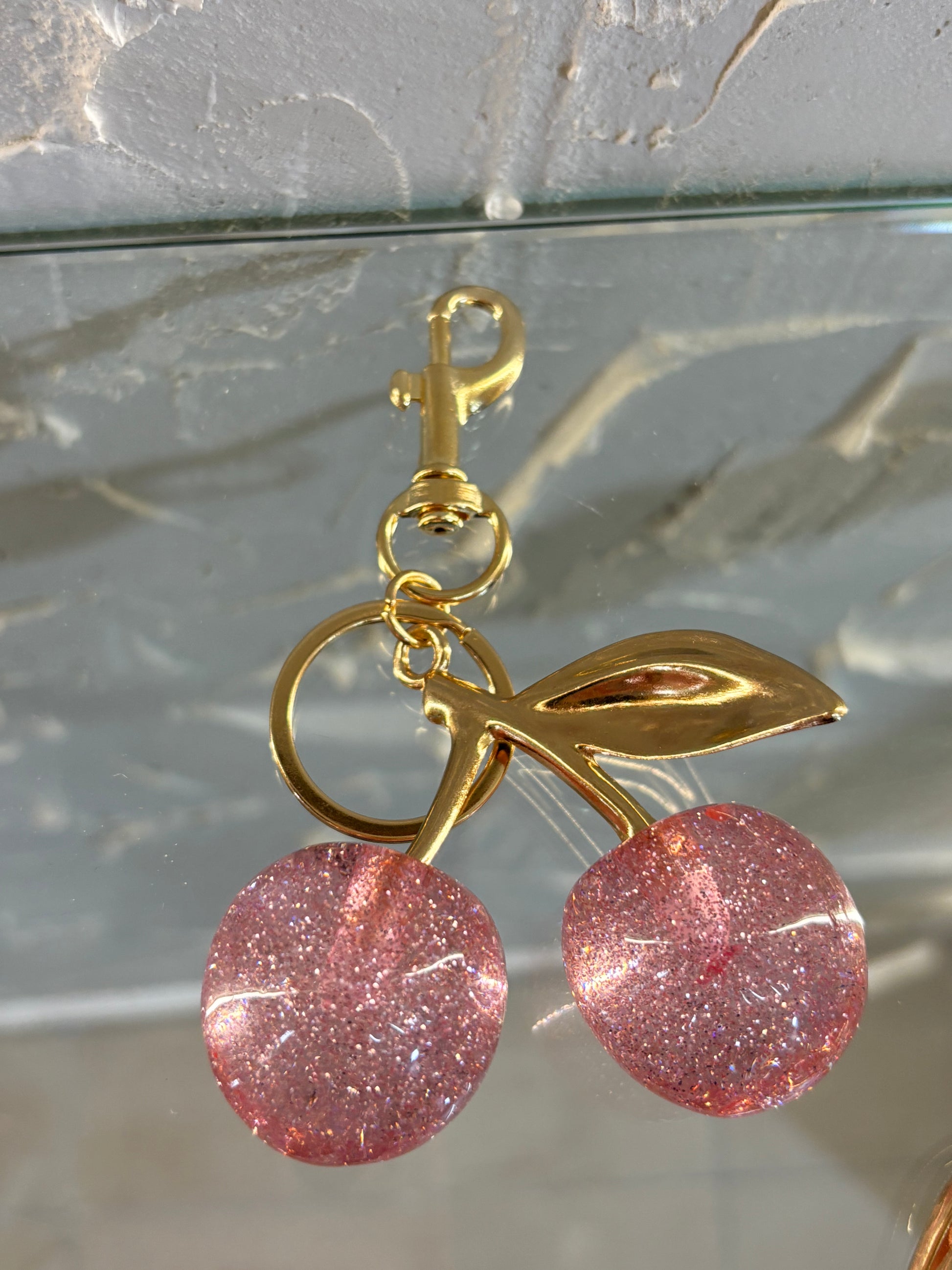 Μπρελόκ Κερασάκι Ροζ με Glitter & Χρυσό Κρίκο | Pnoe Studio