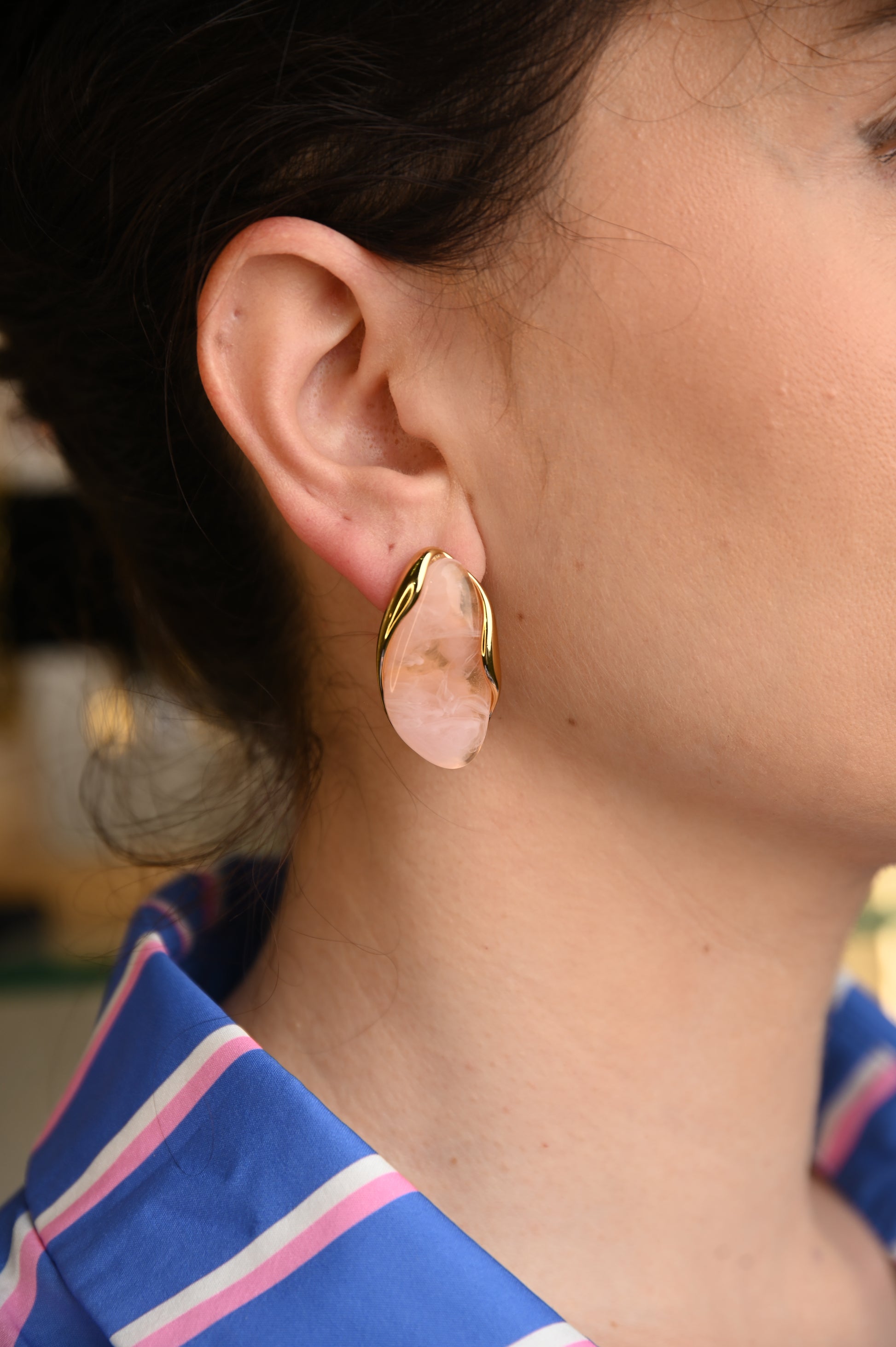 Φόρεσε τη ρομαντική σου πλευρά με το εκλεπτυσμένο σκουλαρίκι σε σχήμα σταγόνας με ροζ πέτρα και χρυσή βάση από την Pnoe Studio. Ένα statement κομμάτι που συνδυάζει απλότητα και κομψότητα.