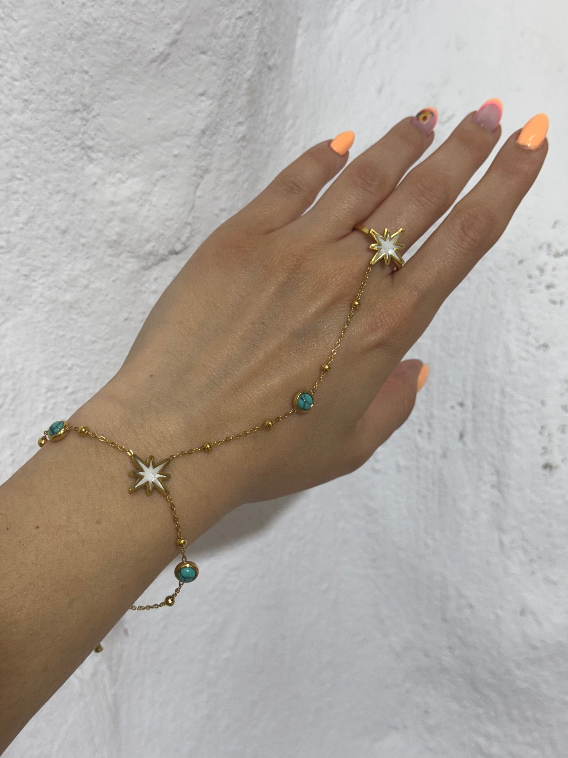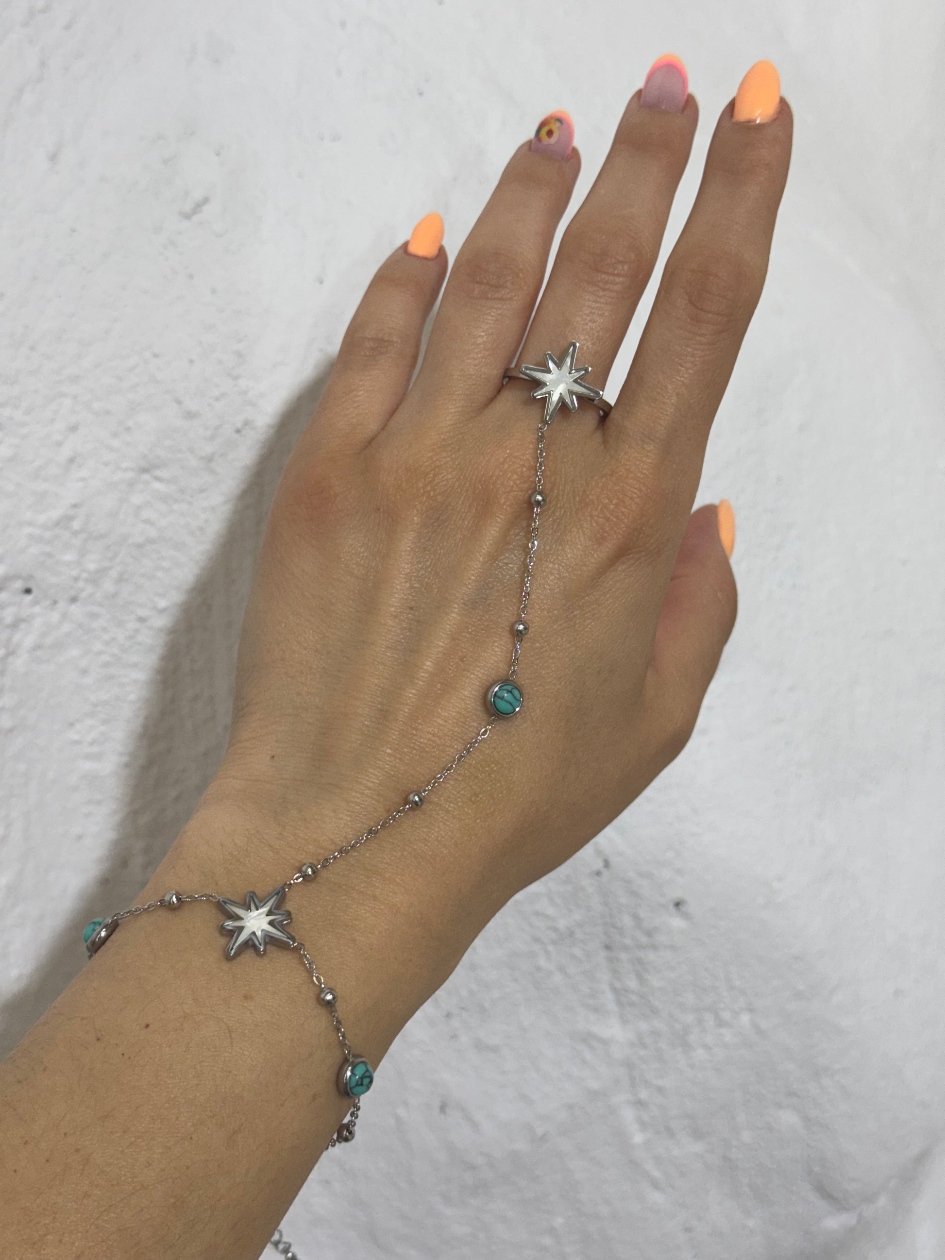 Αγκάλιασε τη λάμψη των άστρων με το StellarWish, ένα βραχιόλι-δαχτυλίδι που μοιάζει να έχει πέσει απ’ τον ουρανό. Διακοσμημένο με φίνο αστέρι από φίλντισι και τυρκουάζ πετρούλες, δίνει φως και χρώμα σε κάθε σου κίνηση. Το λεπτεπίλεπτο design του απογειώνει τόσο τις καθημερινές όσο και τις πιο ιδιαίτερες εμφανίσεις.