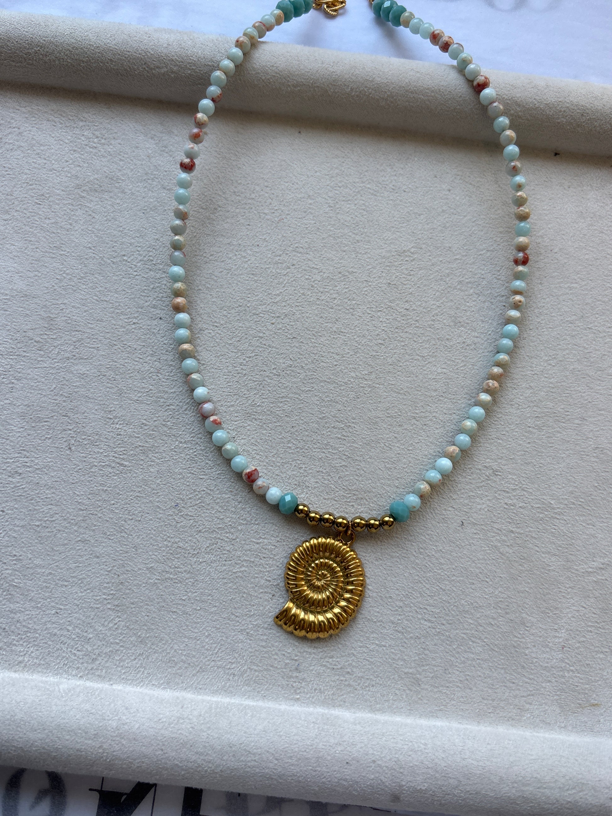 <ul> <li>🩵 Παστέλ χάντρες σε aqua, nude & ροζ αποχρώσεις</li> <li>🐚 Χρυσό μενταγιόν σε σχήμα κοχύλι</li> <li>✨ Λεπτομέρειες σε γυαλιστερό χρυσό</li> <li>🔗 Ρυθμιζόμενο κούμπωμα για άνετη εφαρμογή</li> </ul>