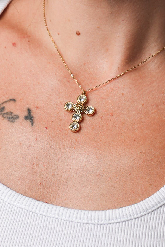 Ένα εντυπωσιακό κολιέ που αναδεικνύει τον σταυρό μέσα από λαμπερά κρύσταλλα σε κυκλικό πλαίσιο. Το minimal design σε συνδυασμό με τη λάμψη των κρυστάλλων δημιουργεί ένα κομμάτι που ξεχωρίζει, ιδανικό για κάθε περίσταση, από καθημερινές εμφανίσεις μέχρι ιδιαίτερες στιγμές.