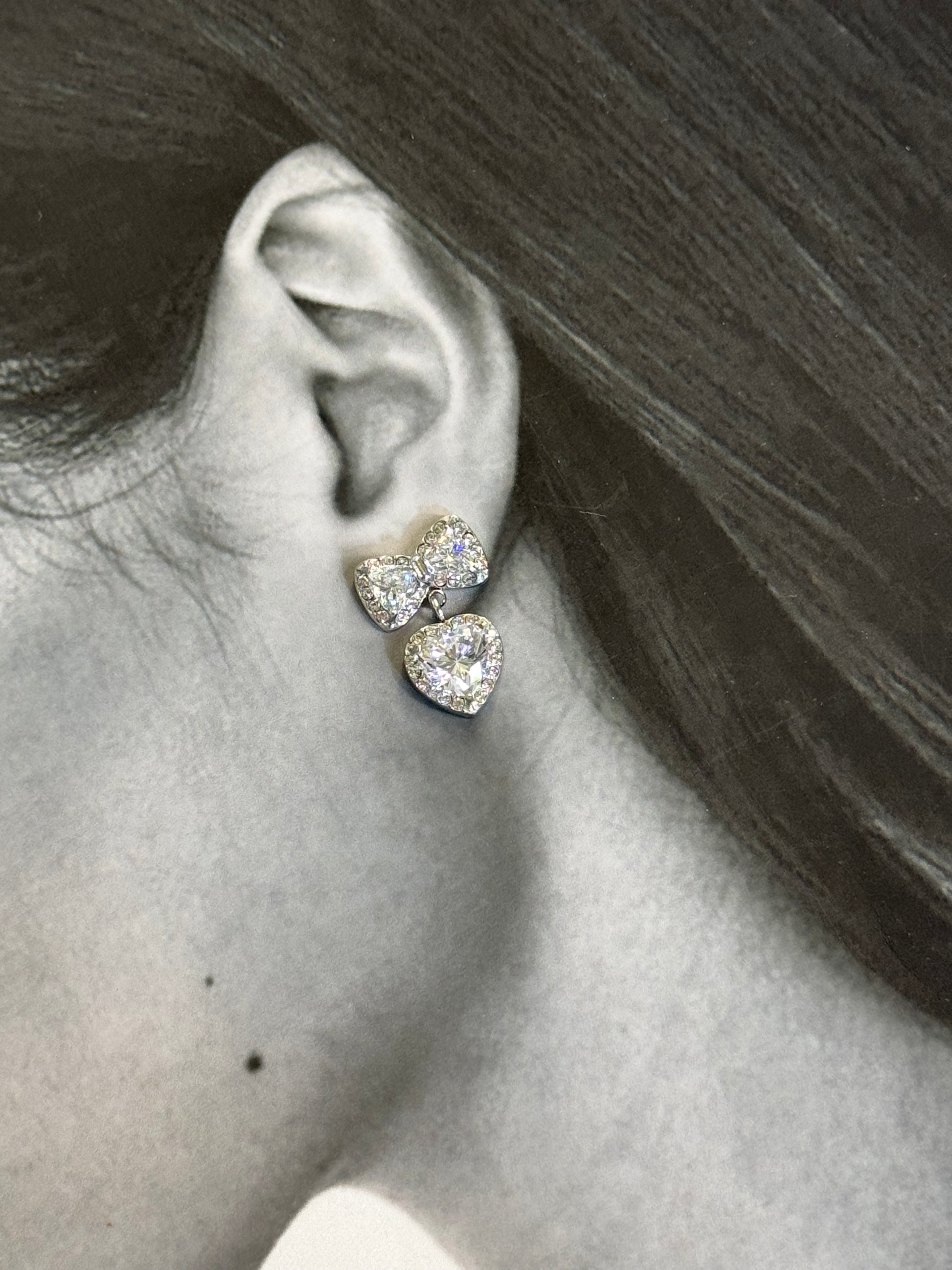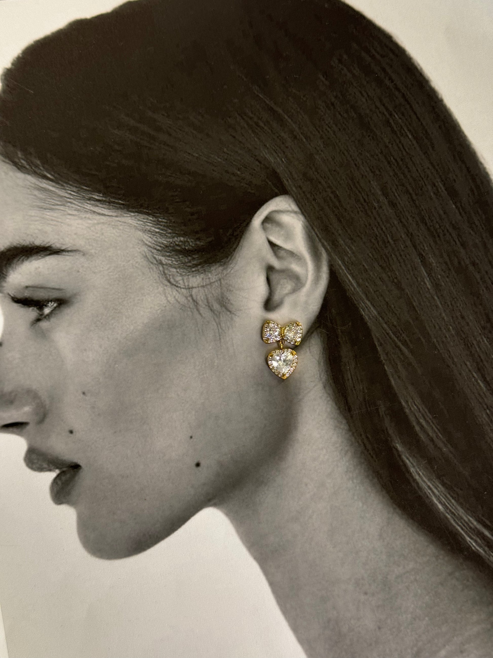Ρομαντικά σκουλαρίκια που συνδυάζουν τον φιόγκο με την καρδιά, δημιουργώντας ένα λαμπερό και παιχνιδιάρικο αποτέλεσμα. Η λάμψη τους αναδεικνύει κάθε εμφάνιση, ενώ το κομψό σχέδιο αποπνέει θηλυκότητα και γοητεία.