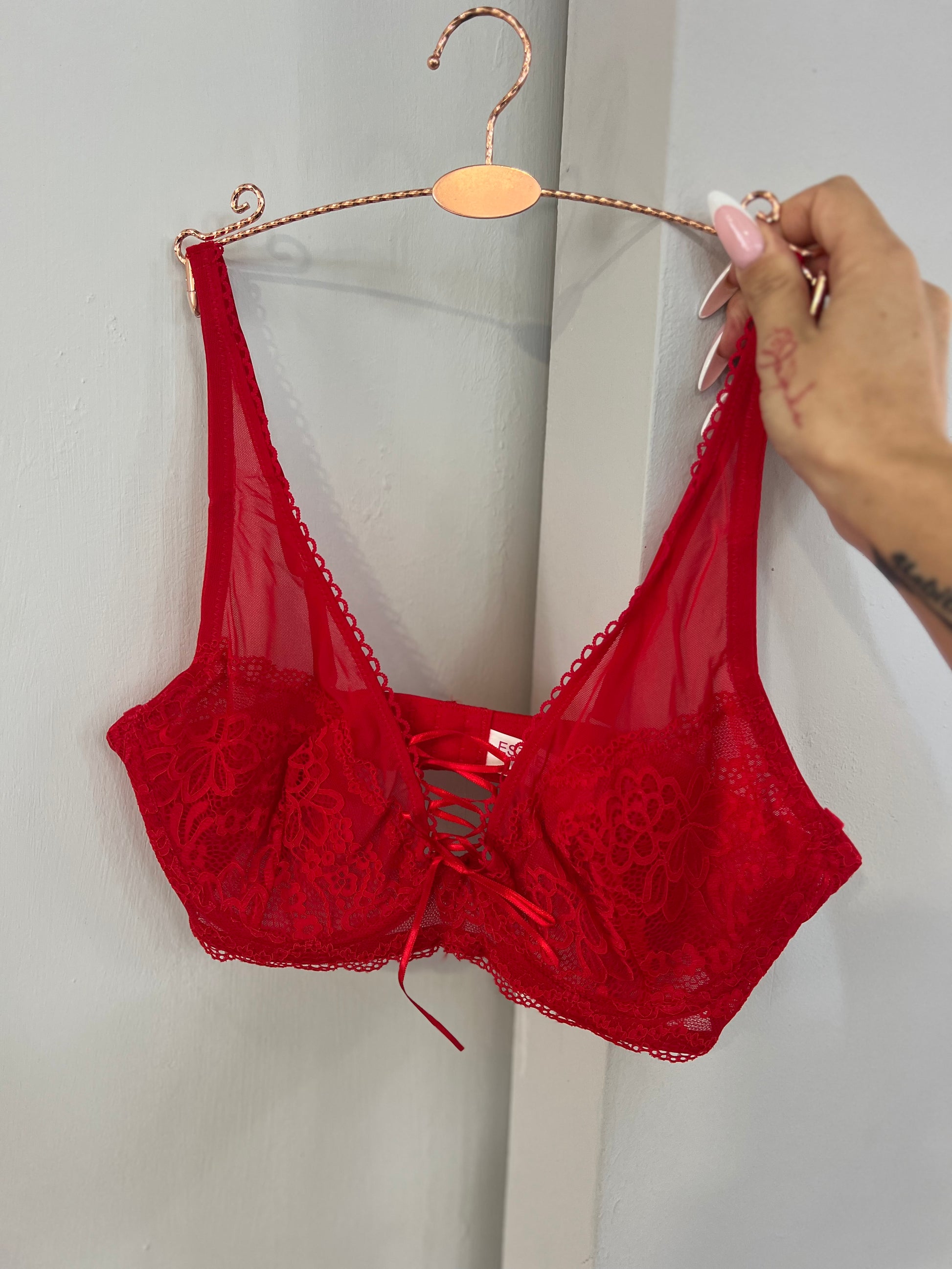 Το Crimson Desire (πάνω μέρος) είναι το απόλυτο σύμβολο πάθους και αυτοπεποίθησης. Με λεπτομέρειες δαντέλας και δεσίματα στο μπροστινό μέρος, αγκαλιάζει το σώμα και τονίζει το ντεκολτέ με τρόπο ακαταμάχητο. Ένα κομμάτι που αναδεικνύει τη γυναίκα που ξέρει ποια είναι, δυναμική, τολμηρή και αληθινή.