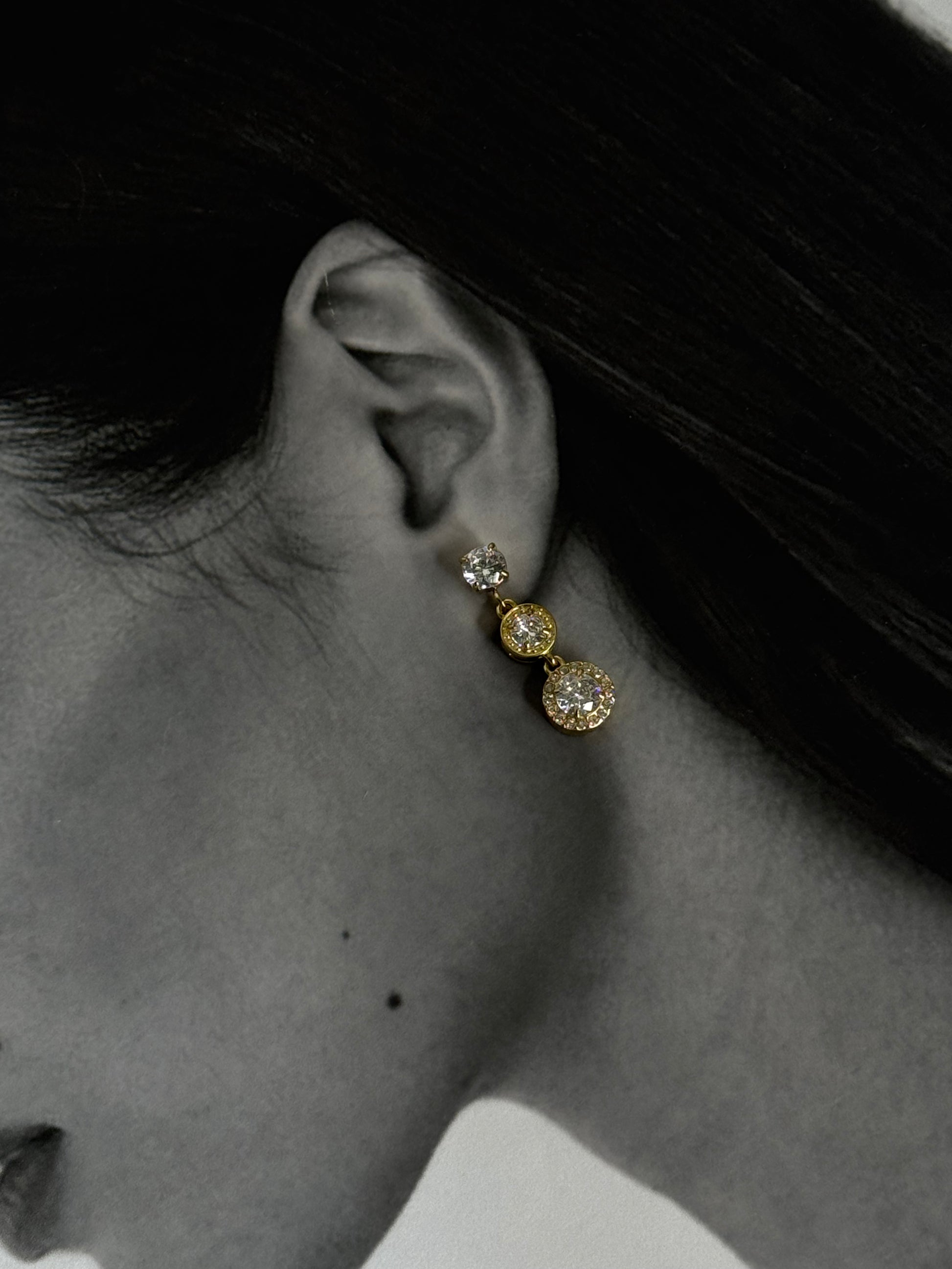 Σκουλαρίκια που ρέουν σαν φως σε τρεις λαμπερούς κύκλους, αποτυπώνοντας την κομψότητα του φεγγαριού σε κάθε κίνηση. Ένα κόσμημα που συνδυάζει διακριτική λάμψη και αισθησιακή ισορροπία, ιδανικό για elegant εμφανίσεις ή καθημερινή λάμψη με χαρακτήρα.