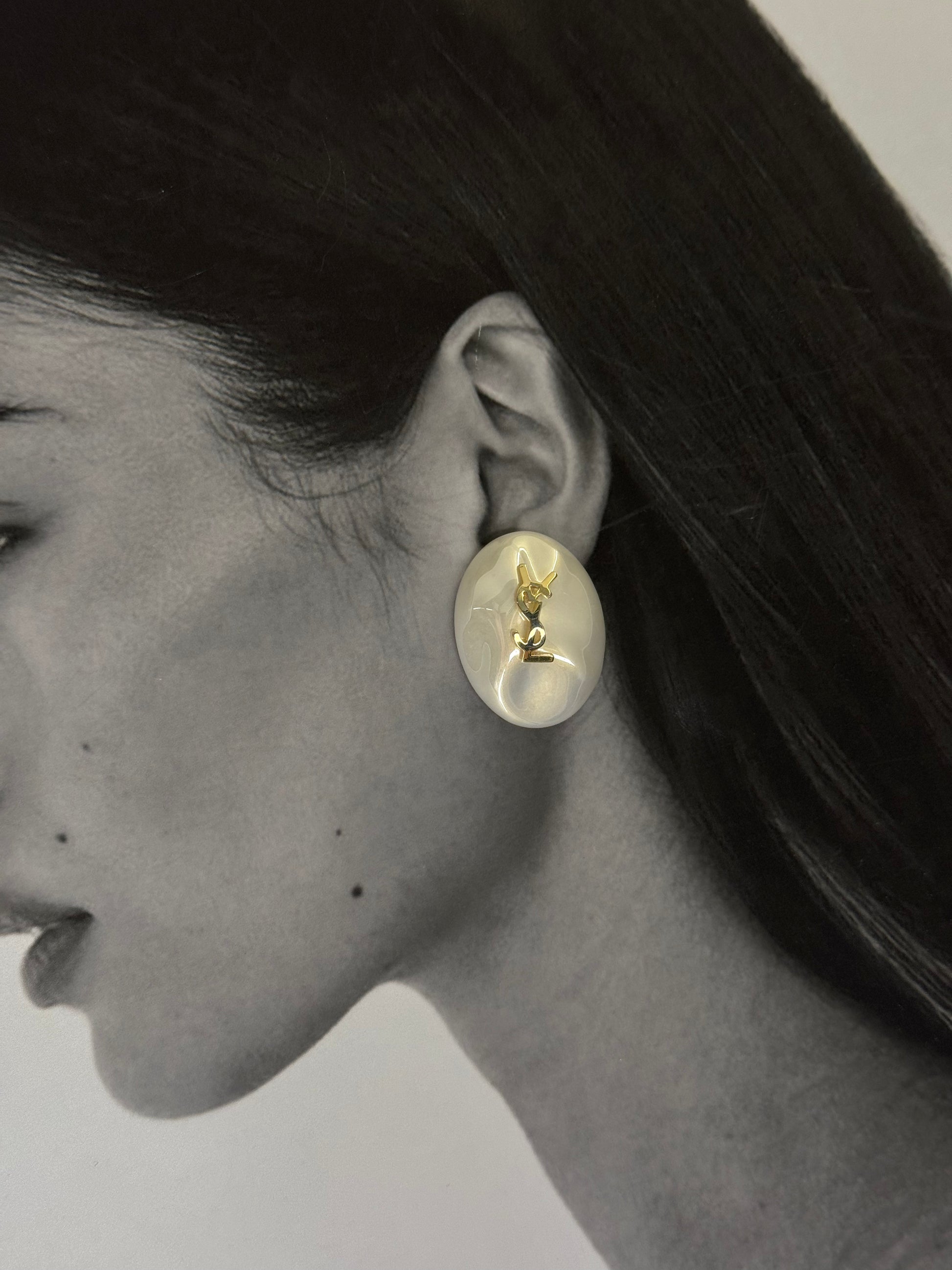 Τα LUNAR ESSENCE σκουλαρίκια είναι εμπνευσμένα από την ομορφιά της σελήνης και τη ρευστή αρμονία της φύσης. Η απαλή, κυματιστή τους επιφάνεια αντανακλά το φως με έναν μοναδικό τρόπο, ενώ η χρυσή λεπτομέρεια στο κέντρο προσθέτει ένα αγγίγμα πολυτέλειας. Minimal αλλά εντυπωσιακά, αυτά τα σκουλαρίκια είναι το απόλυτο fashion statement.