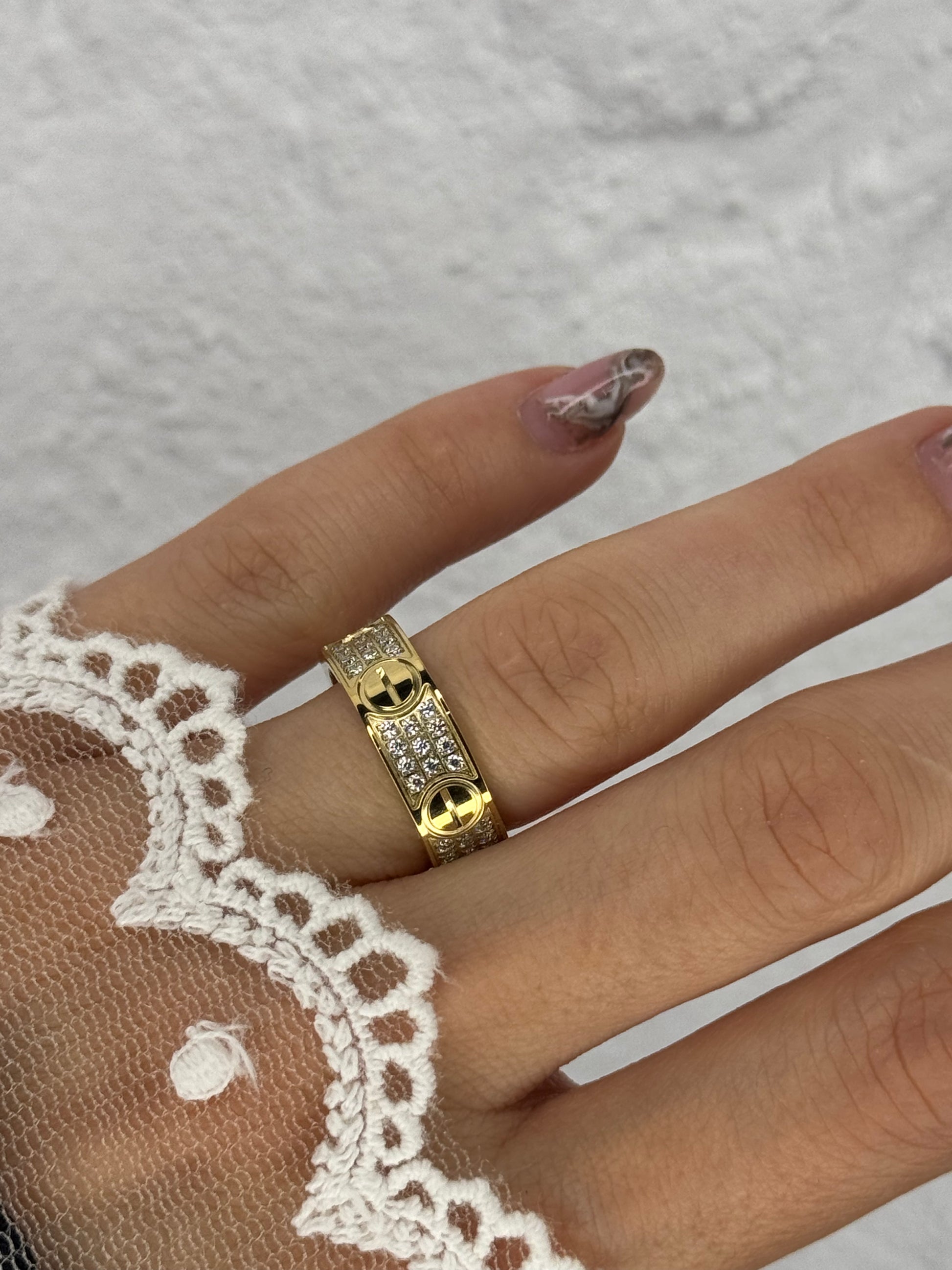 Το Screw Elegance Gold είναι ένα δαχτυλίδι που συνδυάζει τη μοντέρνα αισθητική με τη διακριτική πολυτέλεια. Με το χαρακτηριστικό του design που θυμίζει βίδες και τη λάμψη των zircon, αποτελεί ένα statement κομμάτι που μπορεί να φορεθεί τόσο καθημερινά όσο και σε πιο ιδιαίτερες στιγμές.