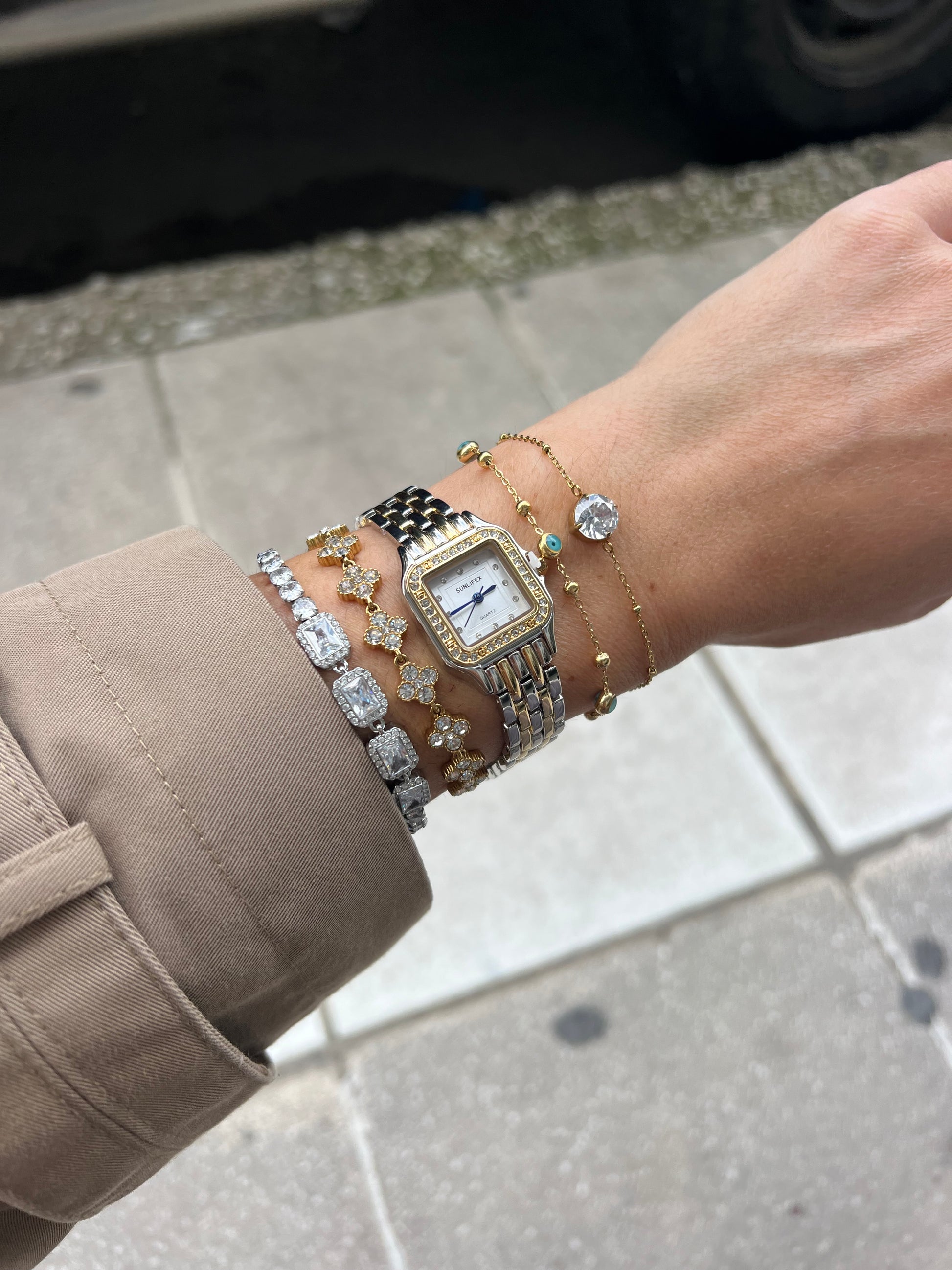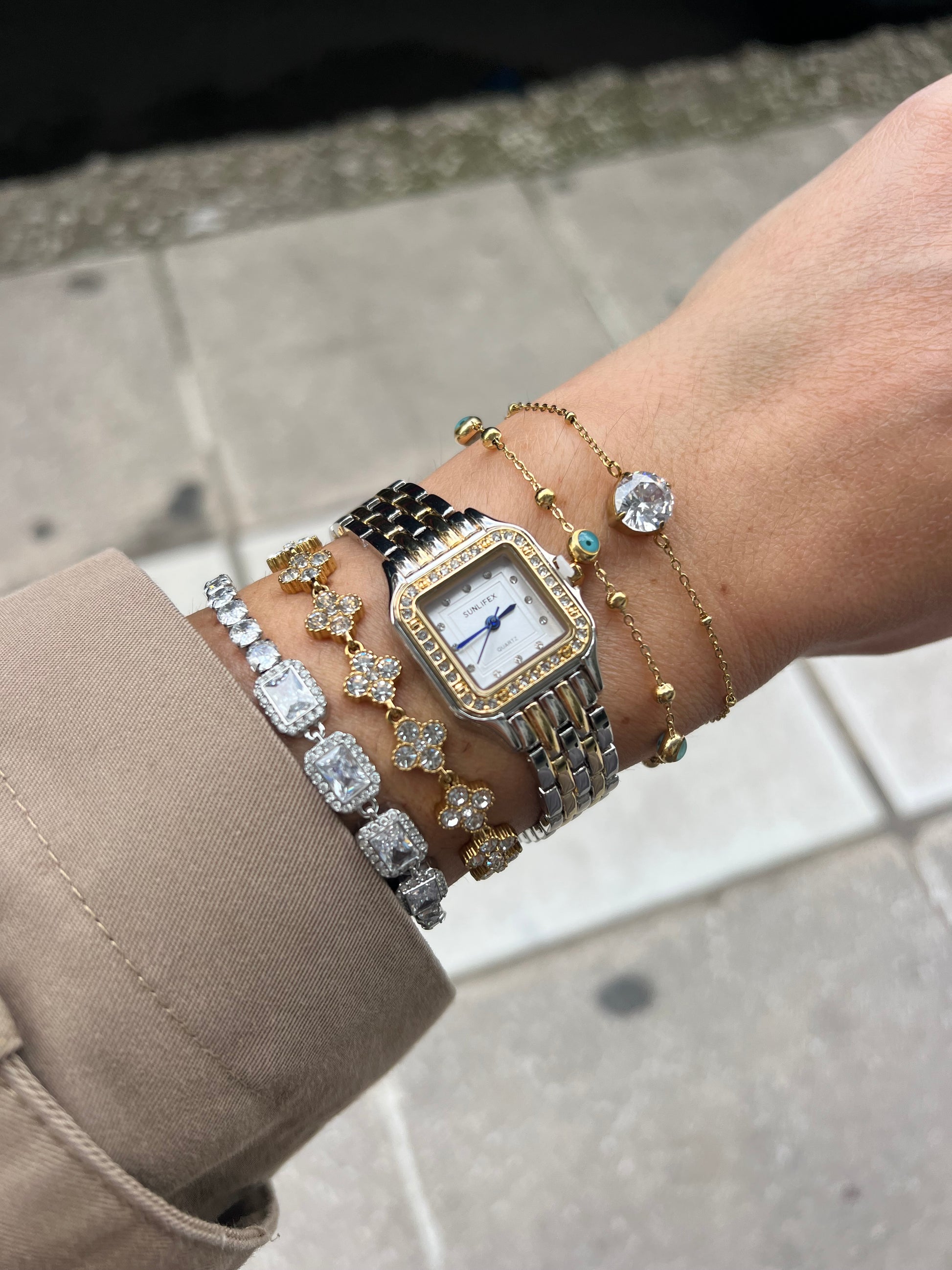 Το Éclat Classique συνδυάζει τη διαχρονική κομψότητα με τη σύγχρονη φινέτσα. Το τετράγωνο πλαίσιο του, διακοσμημένο με διακριτικά zircon, συνοδεύεται από δίχρωμο μπρασελέ σε χρυσό και ασημί, δημιουργώντας ένα αποτέλεσμα που αποπνέει πολυτέλεια και στυλ. Ένα ρολόι ιδανικό για γυναίκες που αγαπούν τα elegant αξεσουάρ με χαρακτήρα.