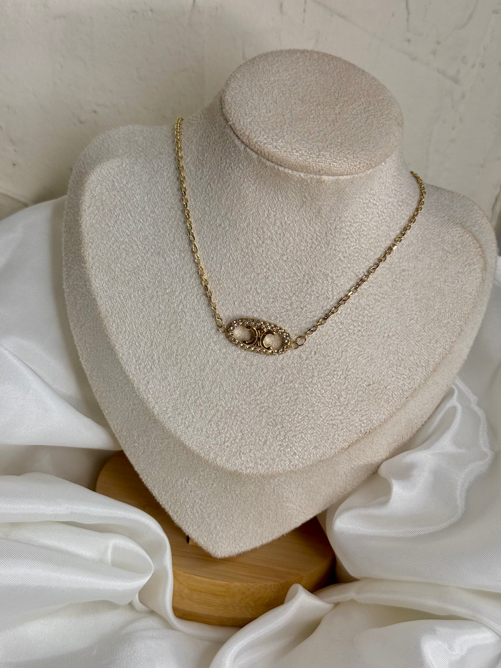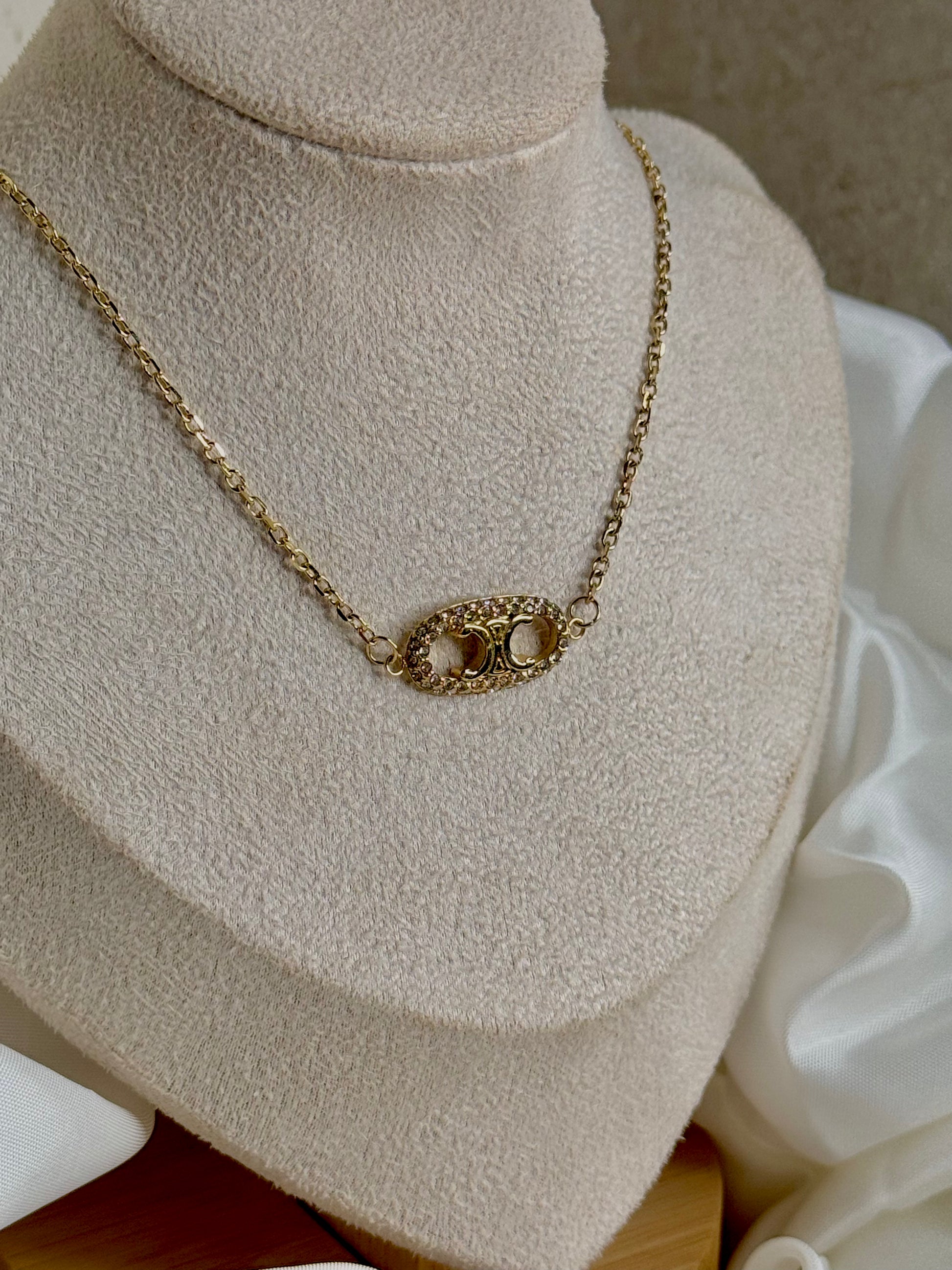 Ένα κολιέ που αποπνέει διακριτική πολυτέλεια και χρυσή ισορροπία. Ο σχεδιασμός του θυμίζει ένα μικρό φυλαχτό, με λεπτομέρειες που παίζουν με το φως και αναδεικνύουν το λαιμό με subtle sophistication. Ιδανικό για καθημερινή χρήση αλλά και για πιο polished εμφανίσεις, ένα κόσμημα που μεταφράζει τη λεπτότητα σε statement.