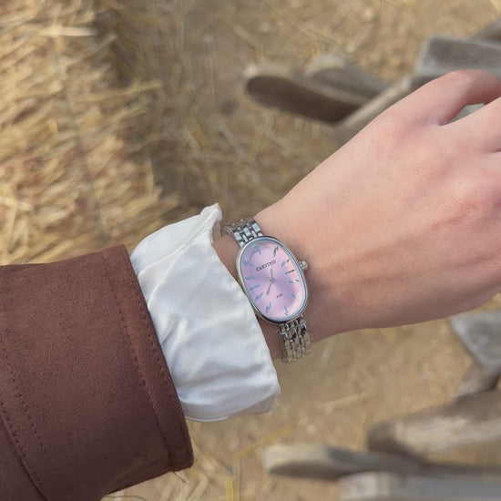 Το ρολόι Elara ξεχωρίζει για τον ιδιαίτερο οβάλ σχεδιασμό του και το καντράν σε απαλή ροζ απόχρωση που ακτινοβολεί φινέτσα. Κατασκευασμένο από stainless steel με ένα λεπτό, κομψό μπρασελέ, είναι το απόλυτο girly αξεσουάρ για να αναδείξετε τη θηλυκότητά σας.