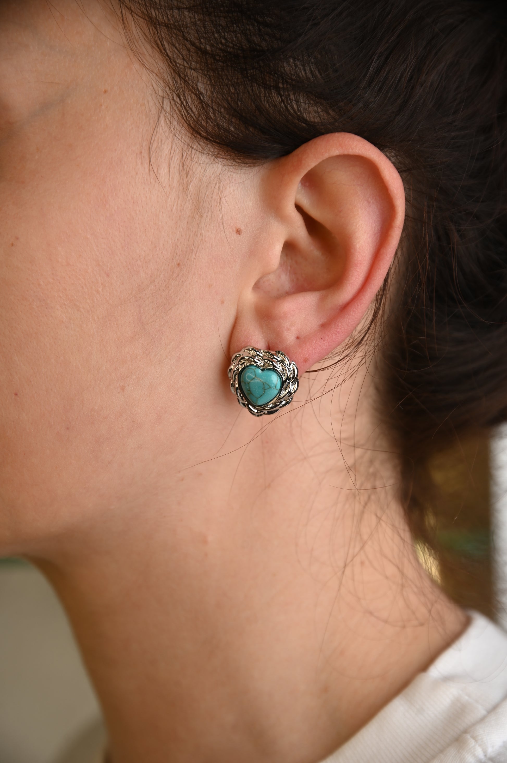 Καρδιά της Φύσης – Σκουλαρίκι με Τιρκουάζ Πέτρα σε Σχήμα Καρδιάς