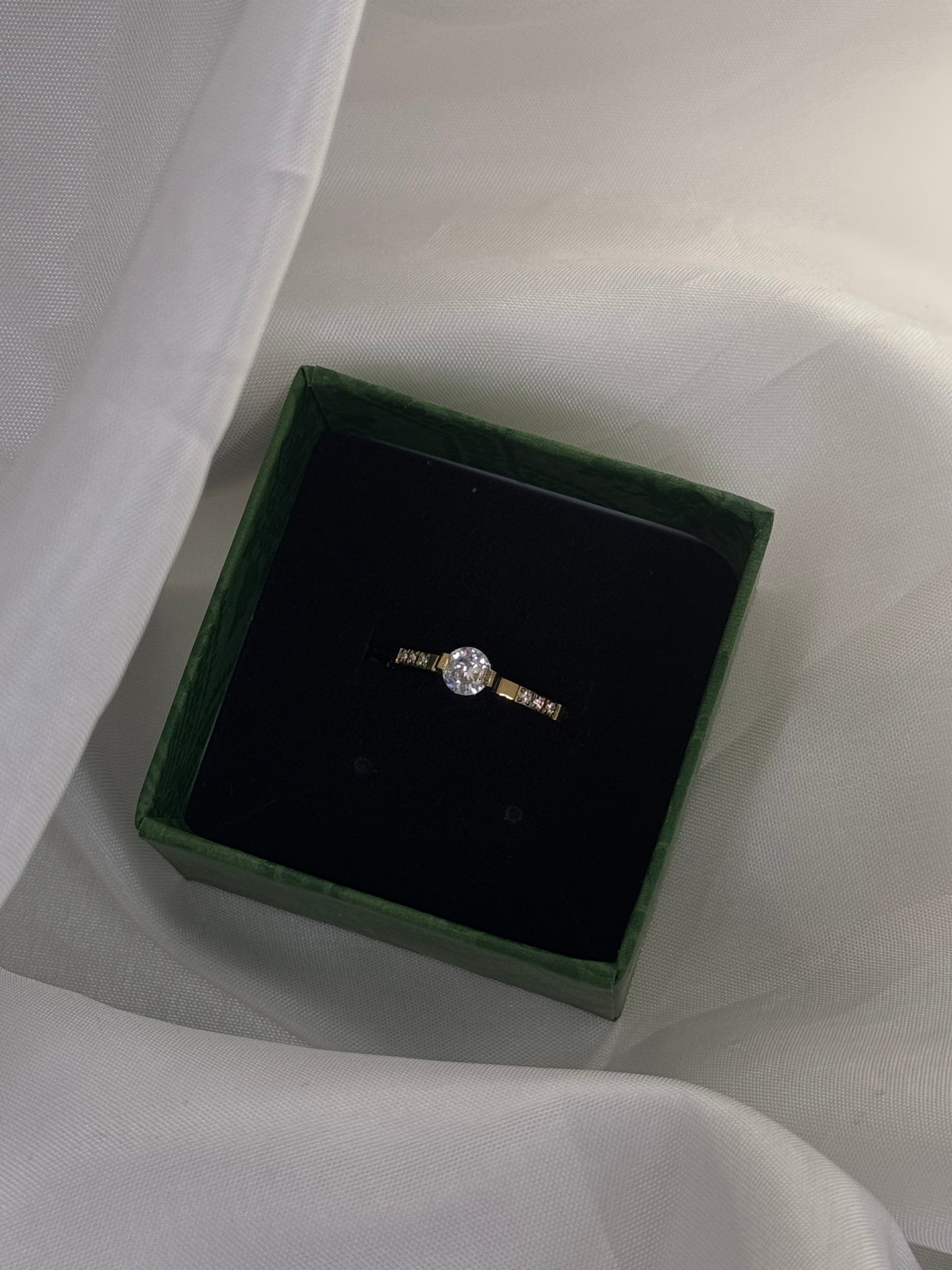 Το Radiant Promise αποπνέει διαχρονική κομψότητα και θηλυκή λάμψη. Η κεντρική πέτρα zircon αγκαλιάζεται από λεπτομέρειες με μικρότερα διαμάντια στο μπροστινό μέρος, δημιουργώντας ένα δαχτυλίδι που τραβά τα βλέμματα με την κάθε κίνηση. Ένα κομμάτι που αποπνέει ρομαντισμό και πολυτέλεια, ιδανικό για κάθε ιδιαίτερη στιγμή.