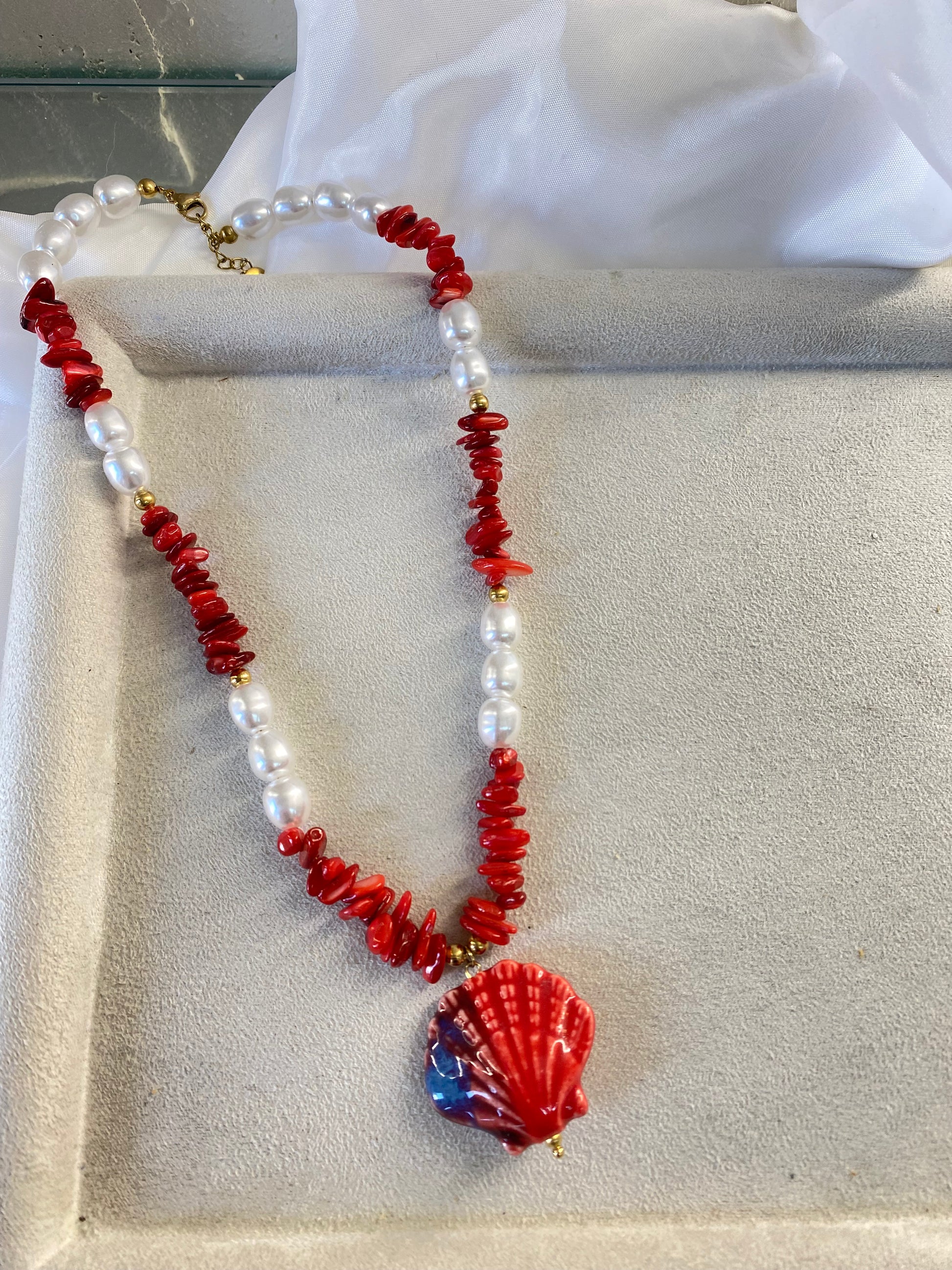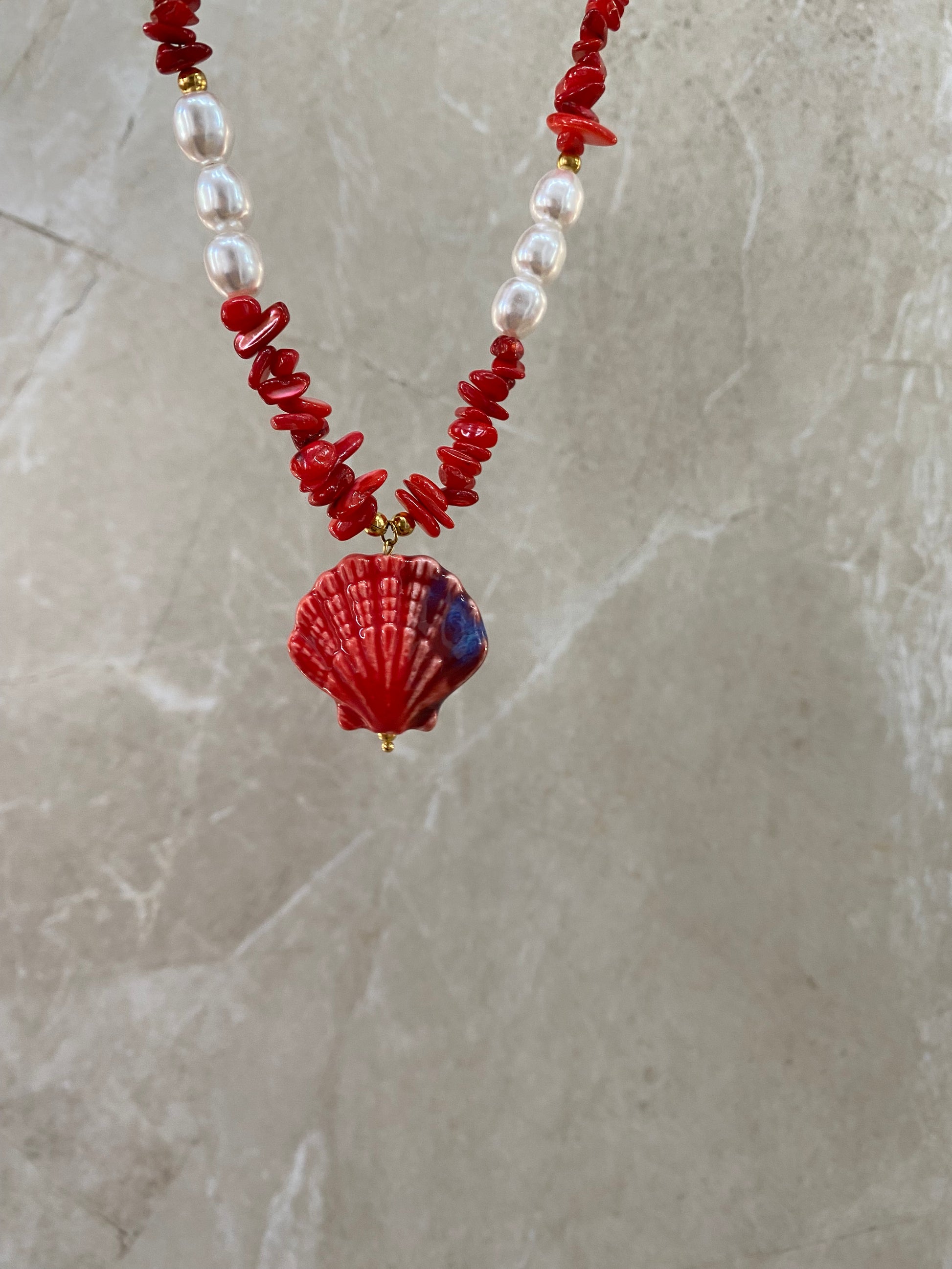 Ατσάλινο κολιέ με charms σε κόκκινη απόχρωση