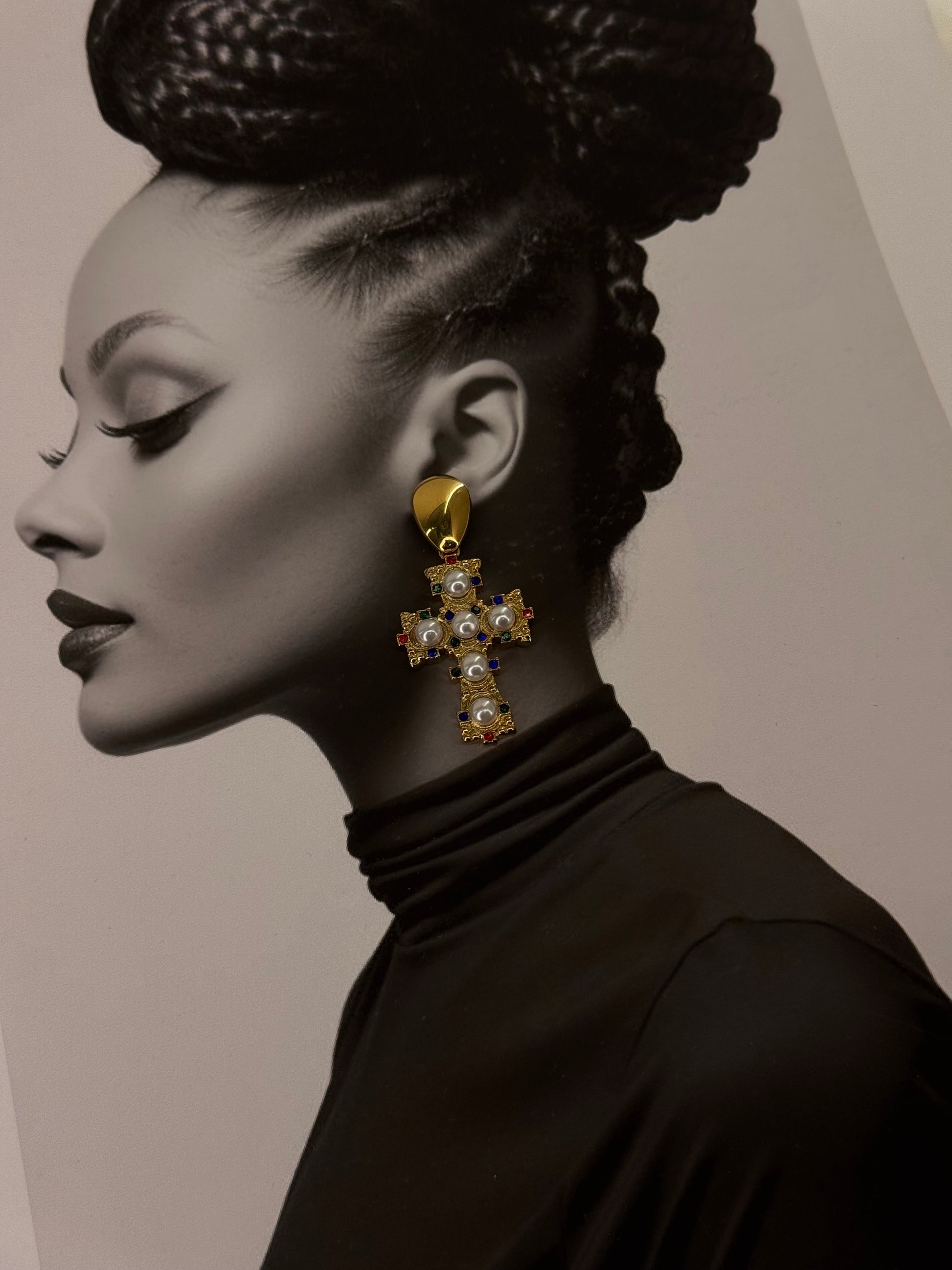 Ένα εντυπωσιακό, αρχοντικό σχέδιο που αποπνέει διαχρονική πολυτέλεια. Ο σταυρός διακοσμείται με πολύχρωμες πέτρες και λεπτομέρειες που «γράφουν» δυνατά σε κάθε εμφάνιση, ενώ η βάση από stainless steel εξασφαλίζει αντοχή, λάμψη και σταθερότητα χωρίς αλλοιώσεις. Ιδανικά για επίσημες στιγμές, glam βραδινές εξόδους και looks που ζητούν κάτι πραγματικά ξεχωριστό.