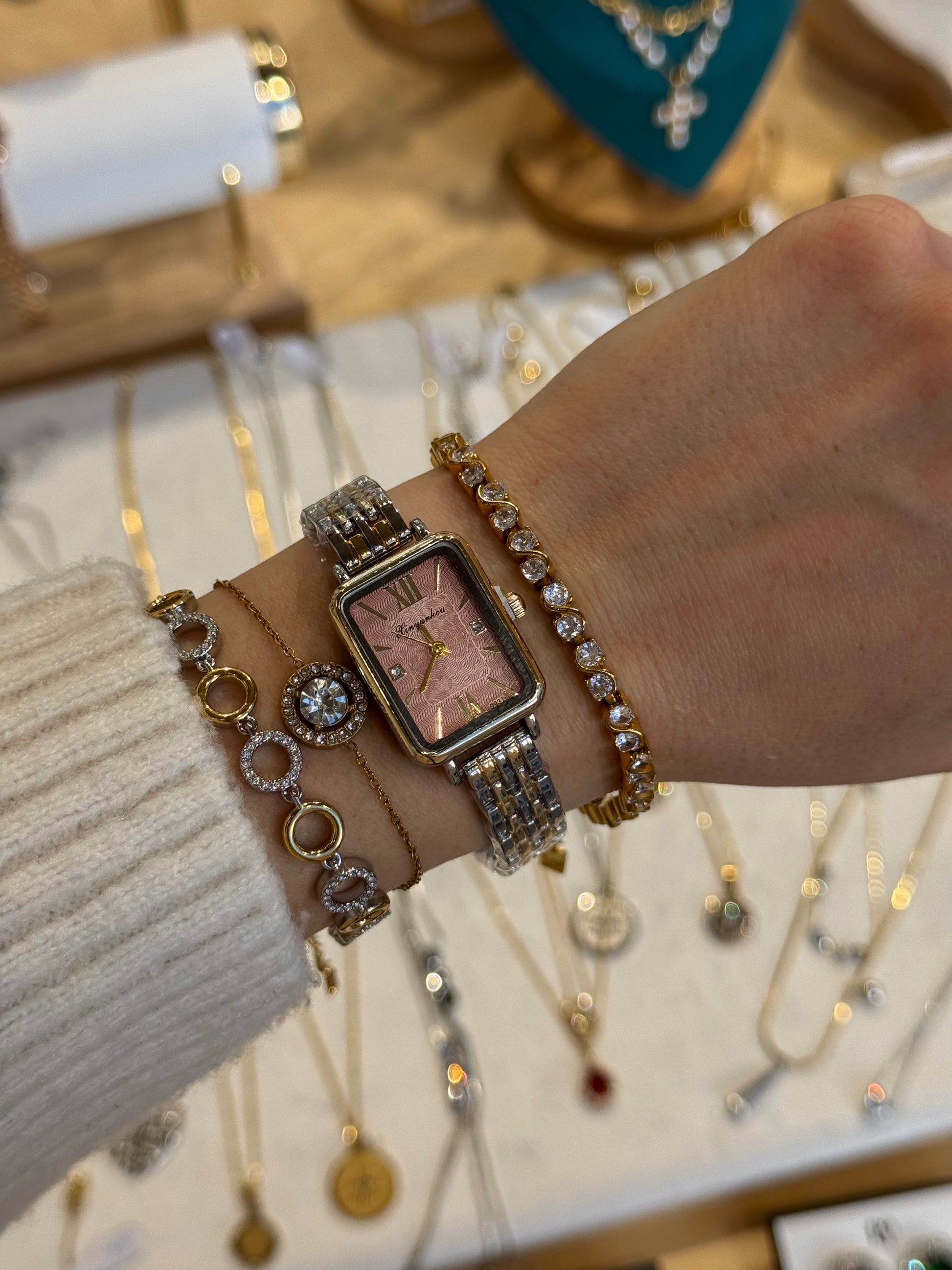 Styling Tip: Συνδυάστε το με χρυσά βραχιόλια-tennis ή λεπτές αλυσίδες, όπως φαίνεται στον εντυπωσιακό συνδυασμό της φωτογραφίας, για ένα ολοκληρωμένο, luxurious look.