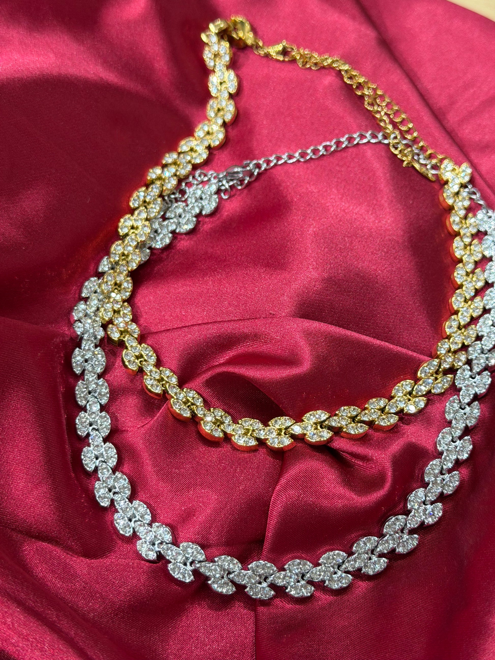 Το “Royal Bloom Chain” είναι ένα statement κολιέ που συνδυάζει λουλουδένιο σχεδιασμό με εκλεπτυσμένη λάμψη. Οι πέτρες δημιουργούν ένα διακριτικό sparkle effect που δίνει στο look σου executive δυναμική και ταυτόχρονα ρομαντική αύρα. Ιδανικό για καθημερινές εμφανίσεις, αλλά και για βραδινές στιγμές υψηλής αισθητικής.