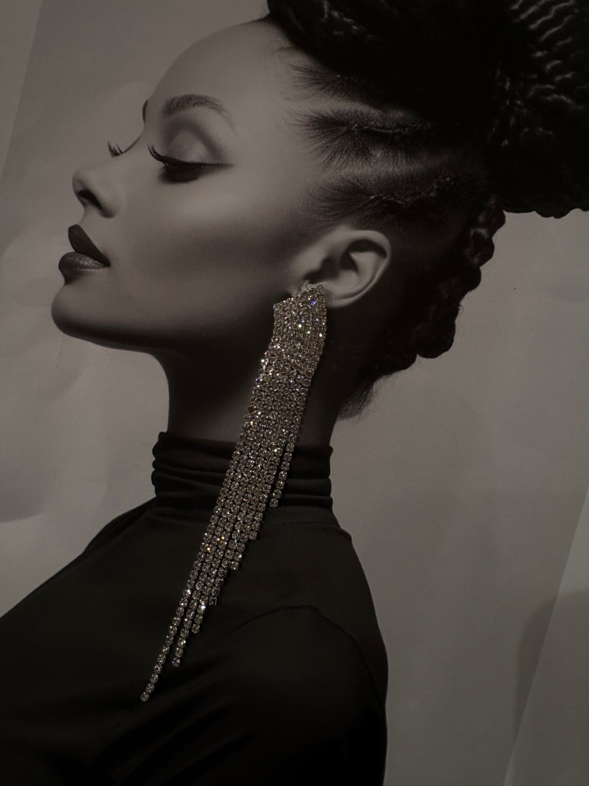 Με εξαιρετικά μακριές σειρές από κρύσταλλα που πέφτουν σαν διαφανές πέπλο λάμψης, το σχέδιο χαρίζει μια αίσθηση κινηματογραφικής πολυτέλειας και υψηλής αισθητικής.