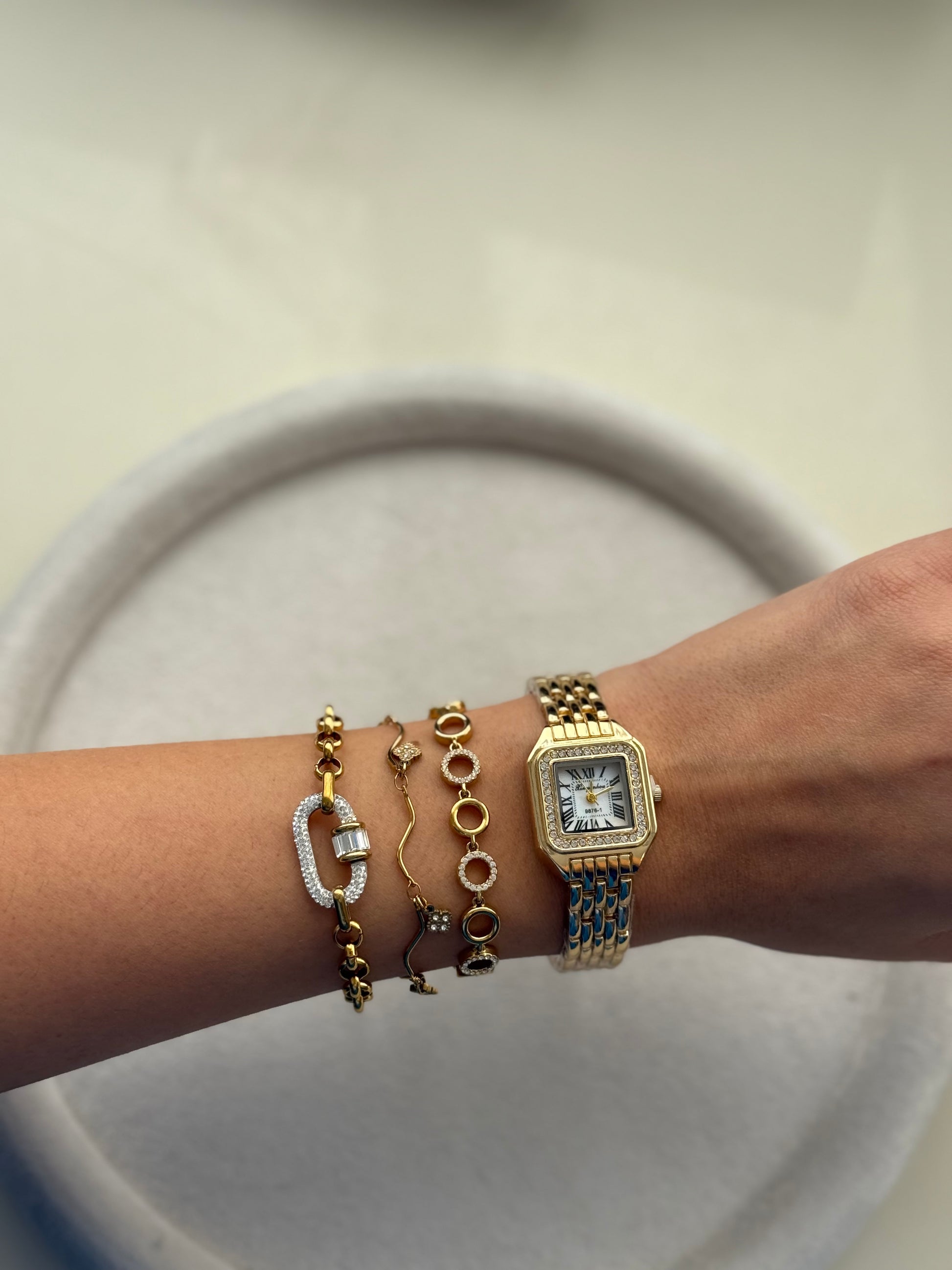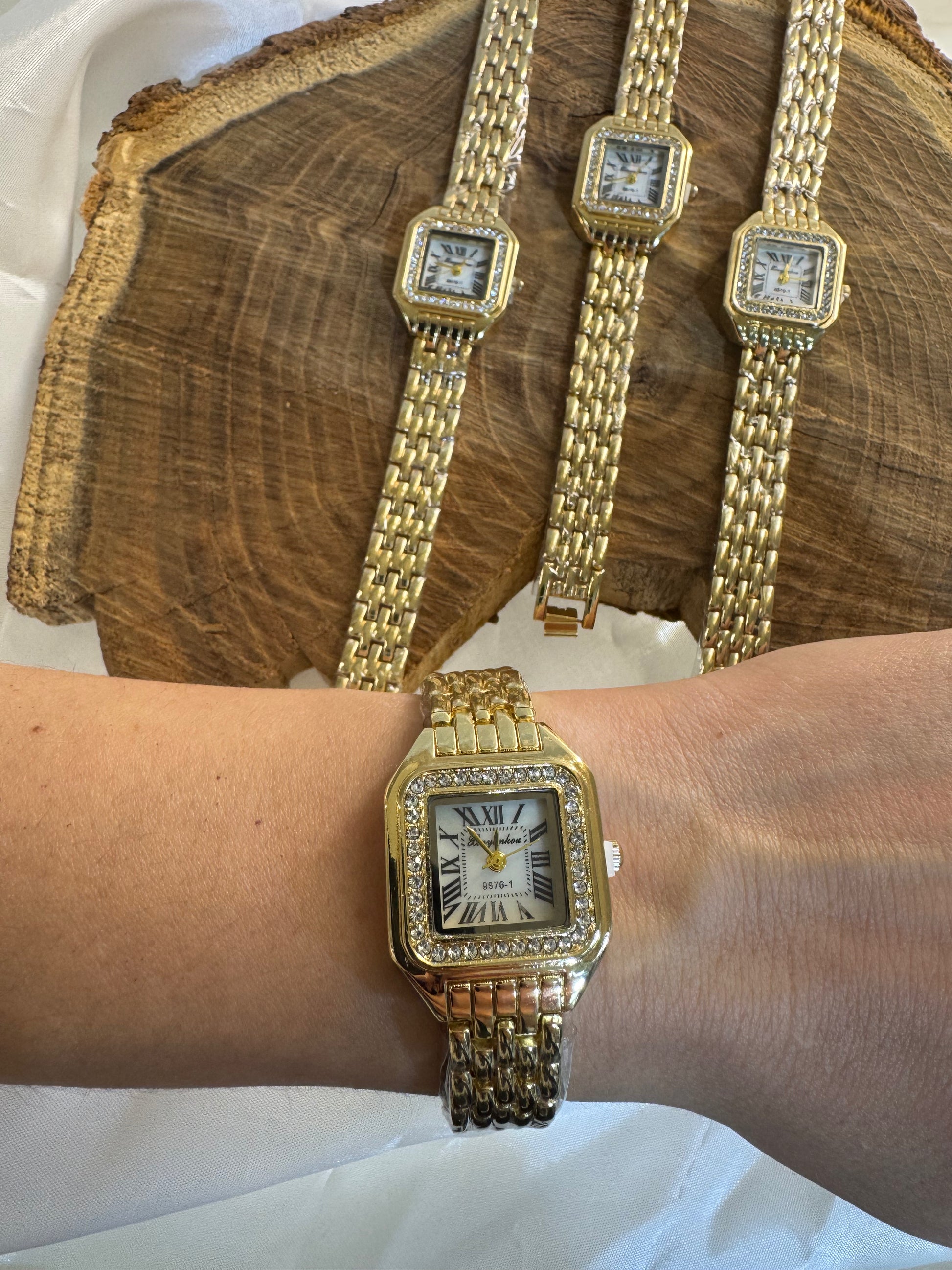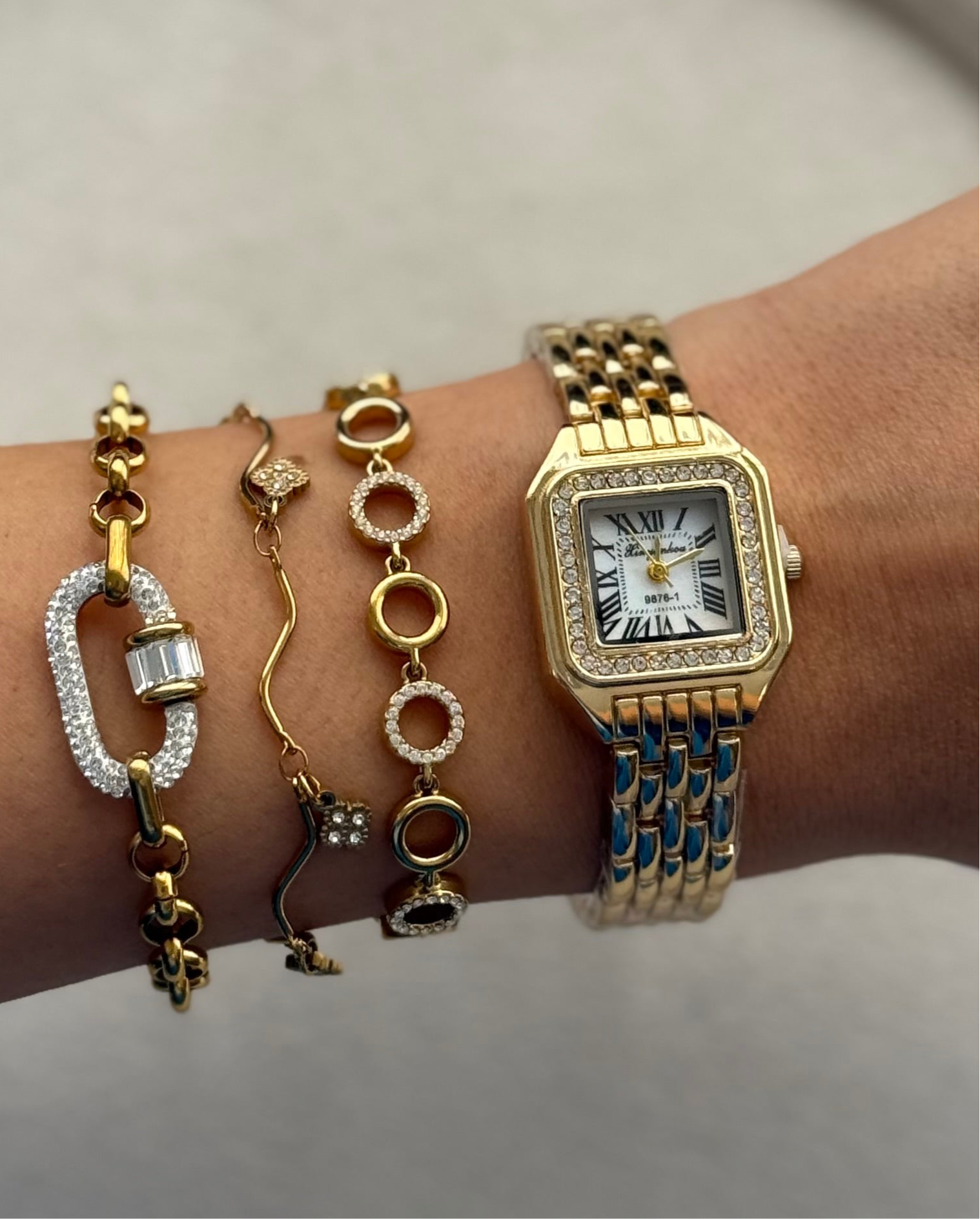 Snow Whisper - ατσάλινο χρυσό ρολόι με άσπρο καντράν