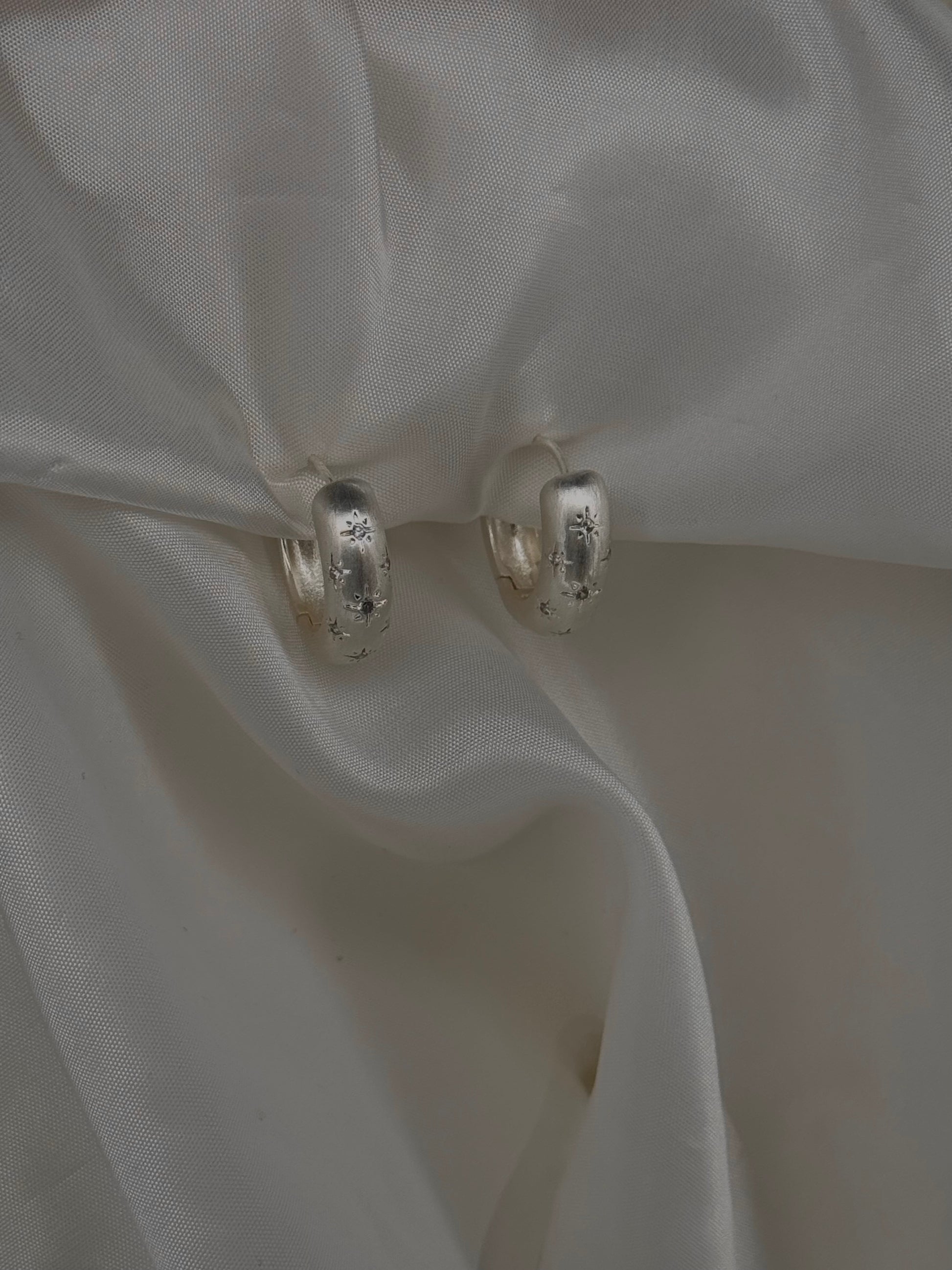 Μια λαμπερή, κοσμική πινελιά που αγκαλιάζει το αυτί με τον πιο elegant τρόπο. Τα Stardust Hoops συνδυάζουν διακριτική λάμψη και καθημερινή άνεση, αποτυπώνοντας μικρά “αστέρια” πάνω στην επιφάνειά τους. Ένα ζευγάρι που φοριέται από πρωινό office look μέχρι βραδινό glam, χωρίς να χάνει ποτέ την κομψότητα του.