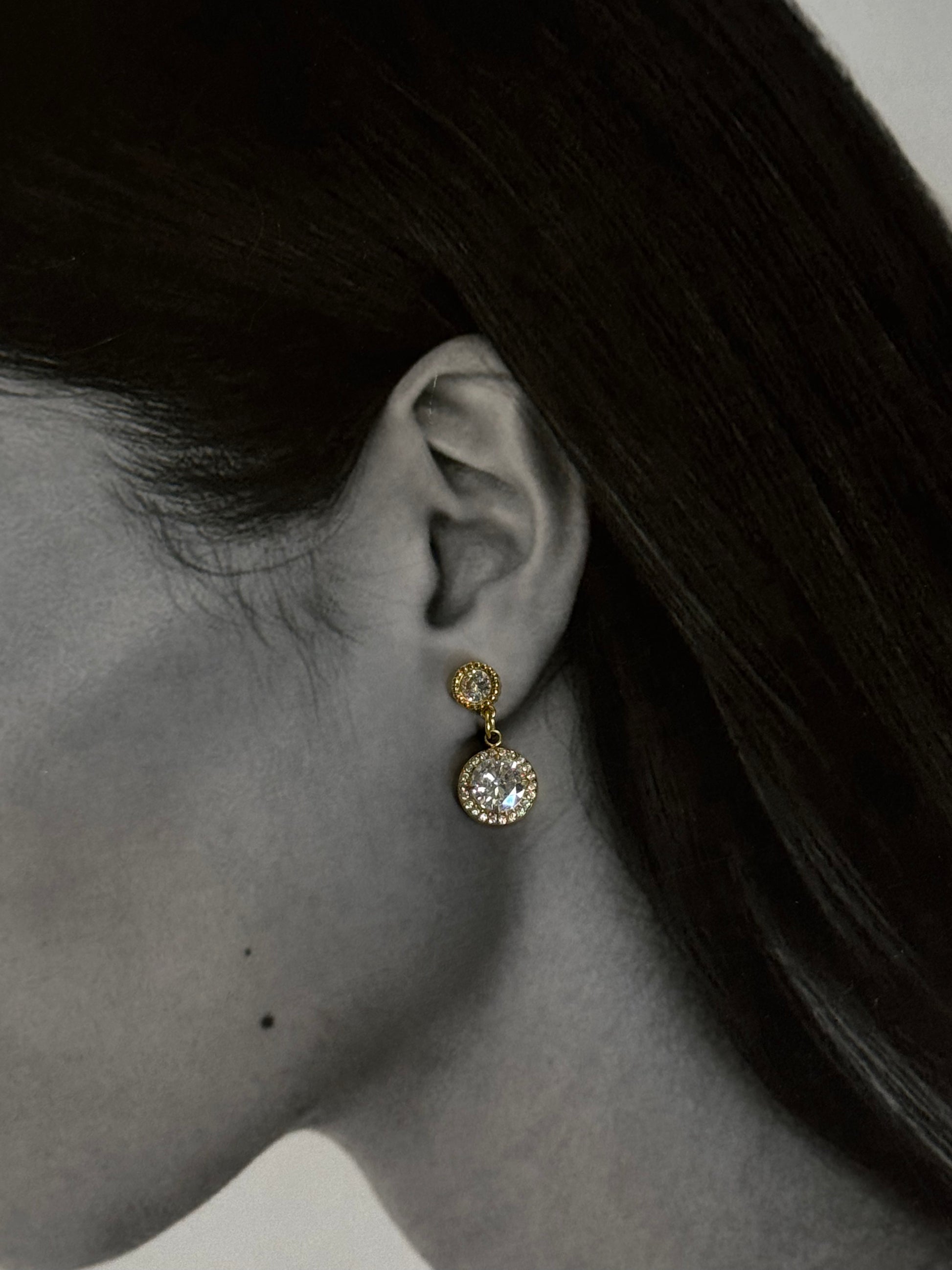 Κομψά σκουλαρίκια που αιχμαλωτίζουν το φως και χαρίζουν ακαταμάχητη λάμψη. Με διπλή λάμψη από μικρό και μεγάλο κρύσταλλο, αναδεικνύουν με διακριτική πολυτέλεια κάθε εμφάνιση, από την καθημερινότητα έως τις πιο λαμπερές στιγμές.