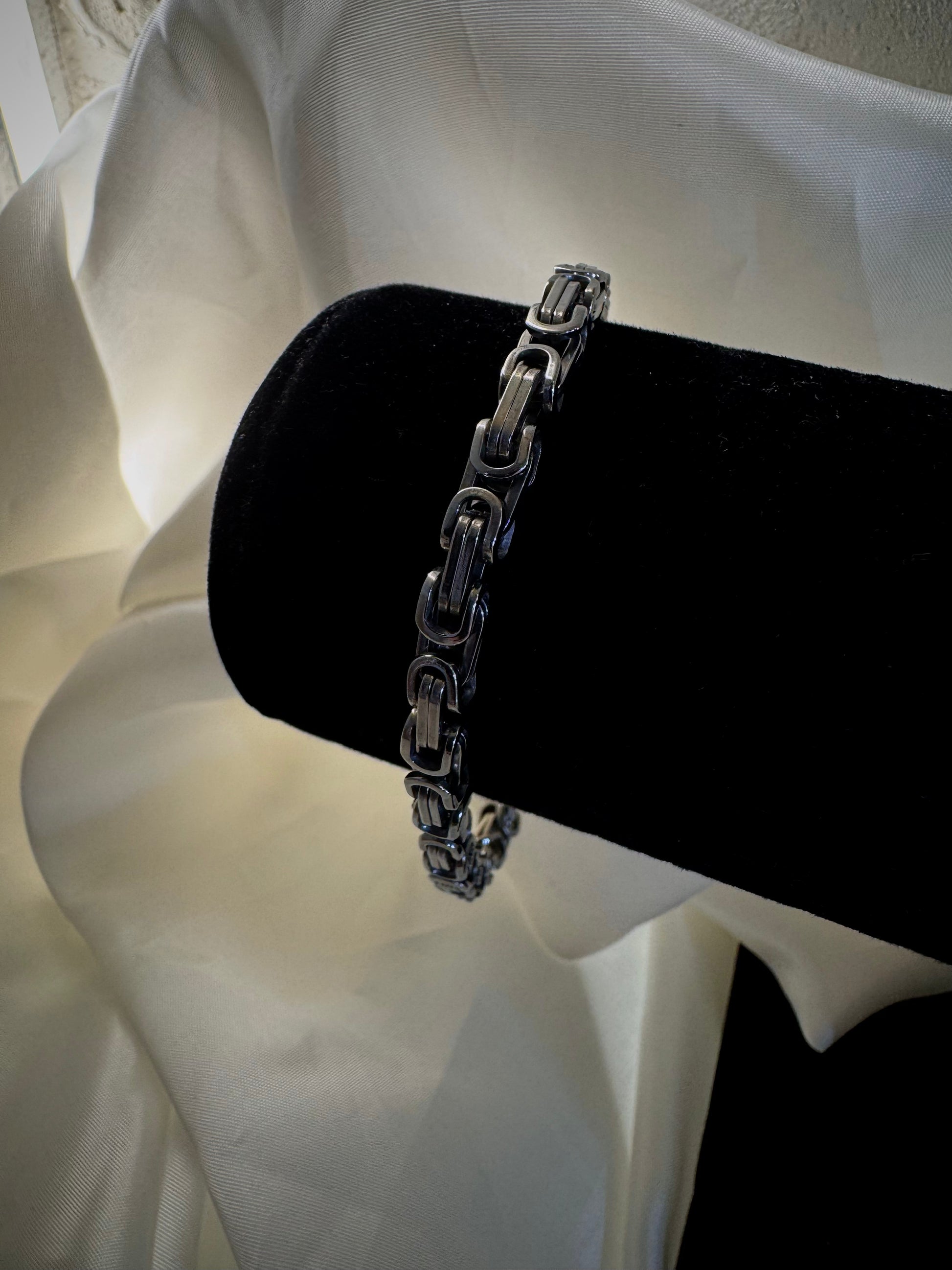 Ένα βραχιόλι με επιβλητικό σχεδιασμό και ανθεκτική δομή, το Steel Link εκφράζει δύναμη, σταθερότητα και στιλ χωρίς περιττές υπερβολές. Οι αλληλένδετοι κρίκοι του προσφέρουν βιομηχανικό αλλά κομψό αποτέλεσμα, ιδανικό για τον σύγχρονο άνδρα.