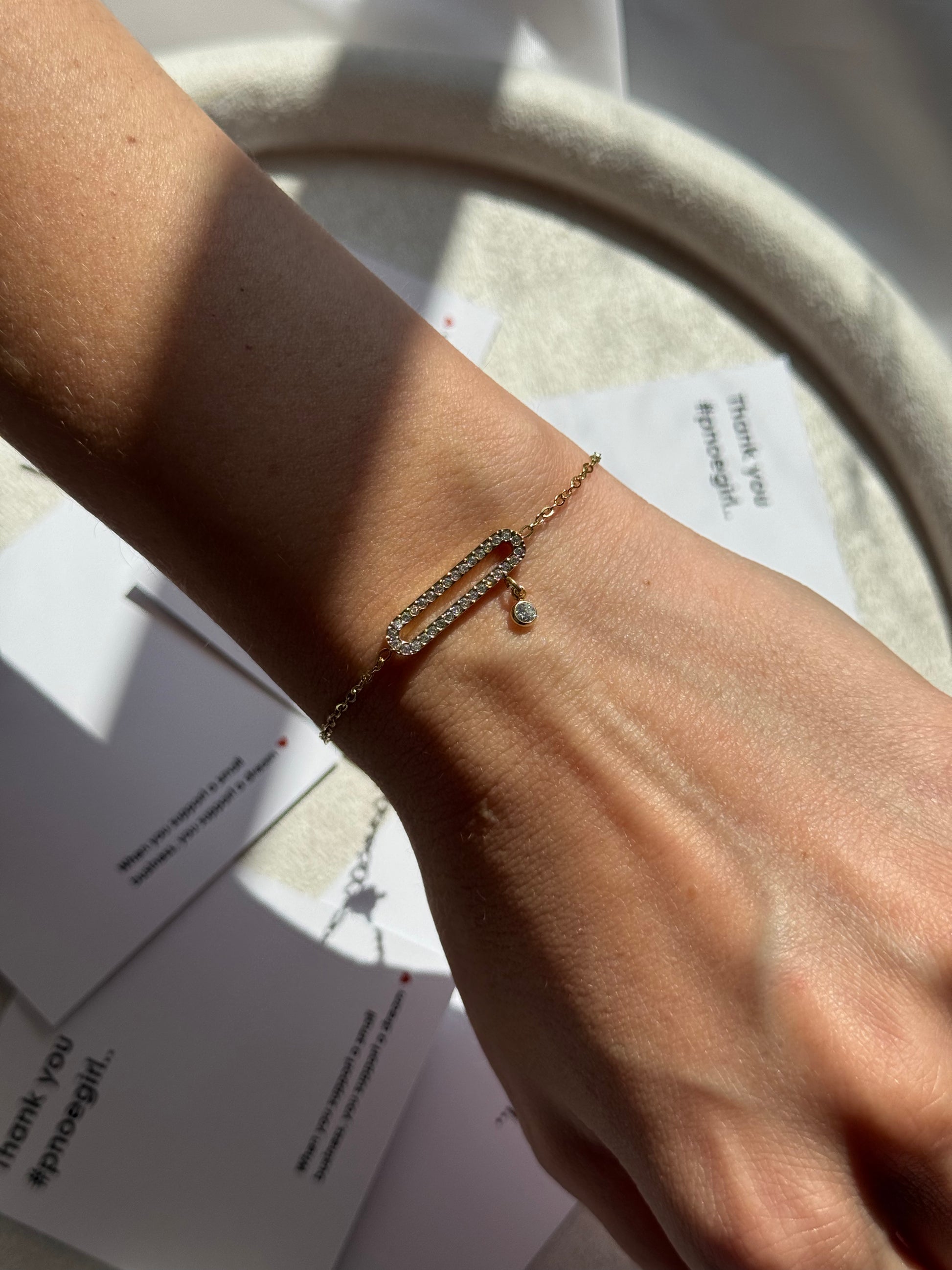 Το Stellar Chain είναι ένα κομψό βραχιόλι που ξεχωρίζει για τον minimal αλλά λαμπερό σχεδιασμό του. Ο επιμήκης κρίκος διακοσμημένος με ζιρκόν πλαισιώνεται από μια λεπτή αλυσίδα σε χρυσή απόχρωση, ενώ η μικρή κρεμαστή πέτρα χαρίζει μια έξτρα δόση λάμψης και κίνησης. Ένα κόσμημα που μπορεί να φορεθεί καθημερινά αλλά και σε πιο ιδιαίτερες περιστάσεις, αναδεικνύοντας τον καρπό με διακριτική πολυτέλεια.