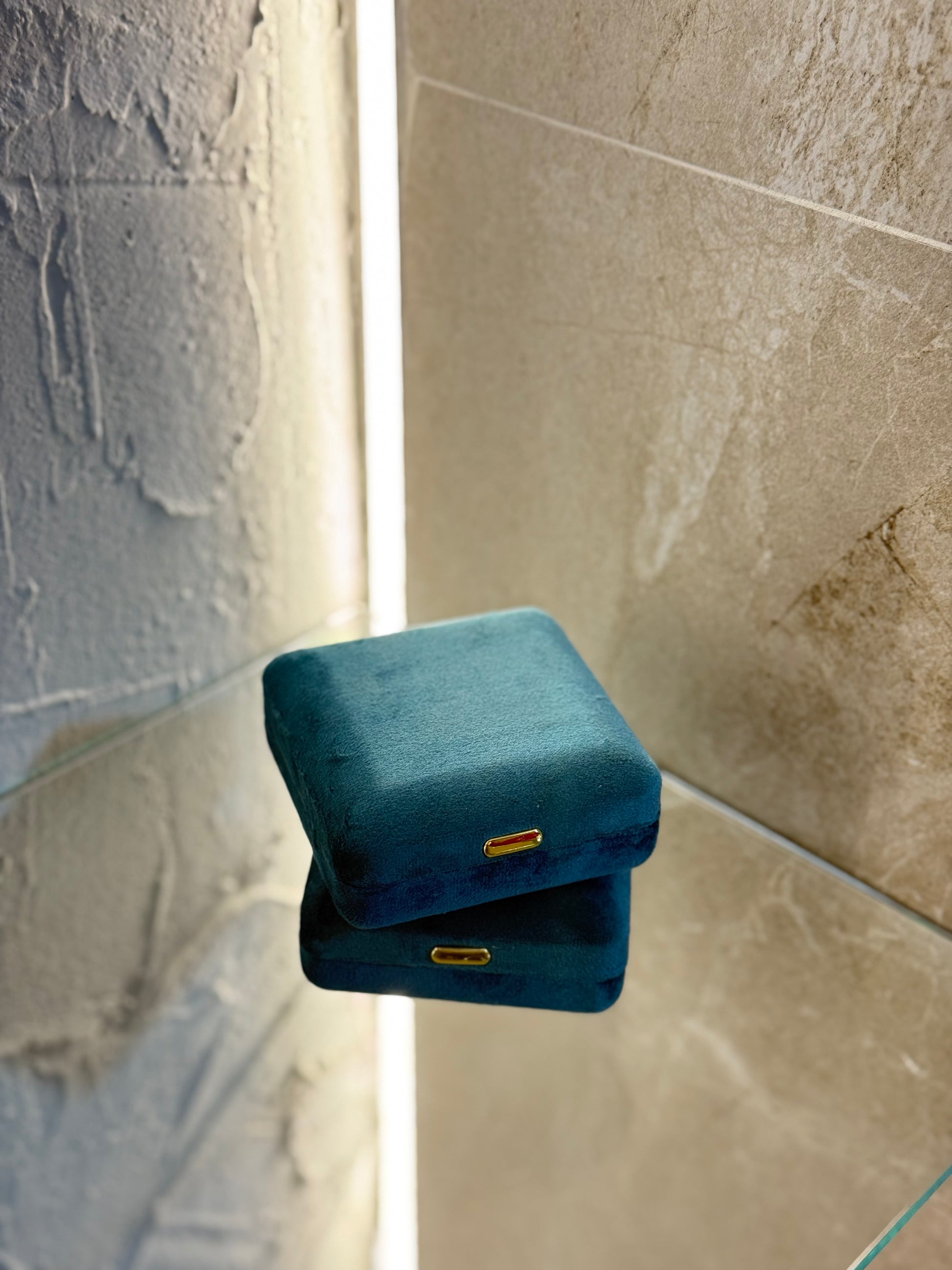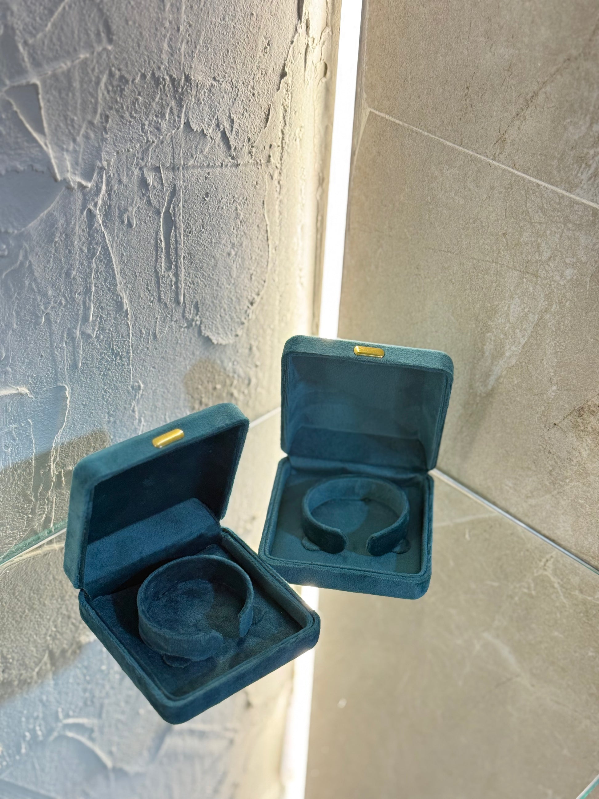 Η χρυσή λεπτομέρεια στο καπάκι, σε συνδυασμό με το διακριτικό μεταλλικό κούμπωμα, προσφέρουν ένα εκλεπτυσμένο φινίρισμα, καθιστώντας τη θήκη ιδανική για δώρο ή παρουσίαση πολυτελούς κοσμήματος