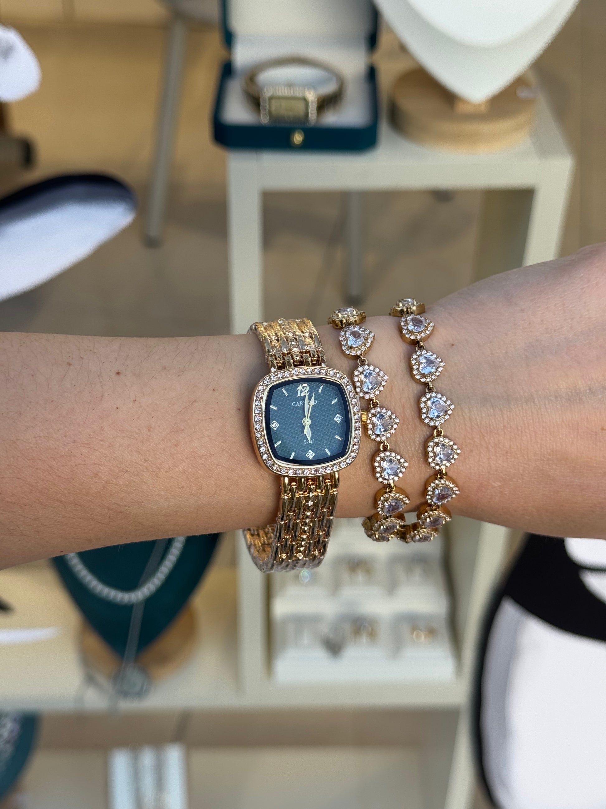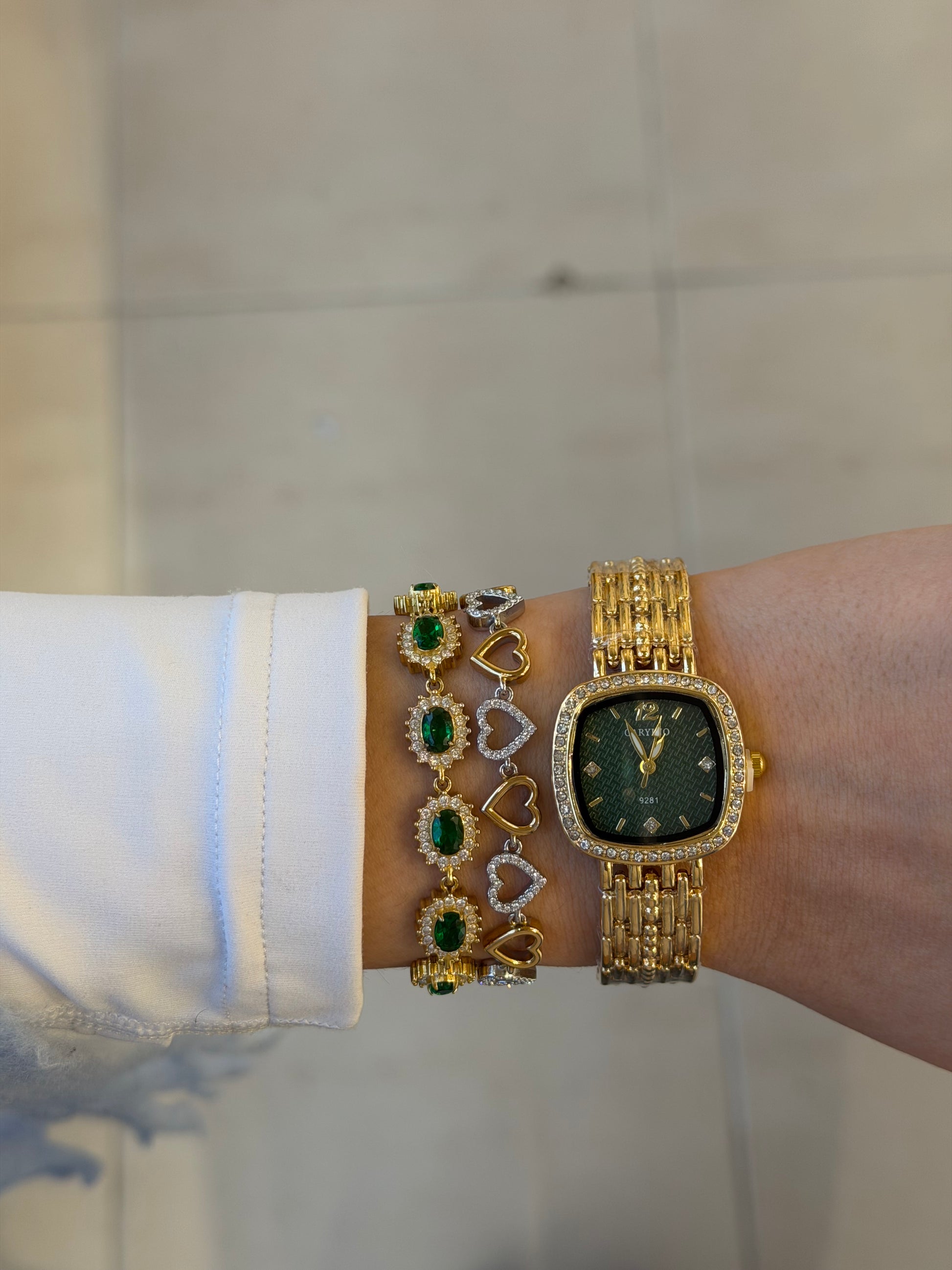 Το Verde Éclat Watch είναι μια ωδή στη σύγχρονη κομψότητα. Το βαθύ πράσινο καντράν του αποπνέει ηρεμία, κύρος και διακριτική πολυτέλεια, ενώ το χρυσό φινίρισμα της κάσας και του μπρασελέ δημιουργεί μια αρμονική αντίθεση που τραβά το βλέμμα χωρίς υπερβολές. Σχεδιασμένο για γυναίκες που κινούνται με αυτοπεποίθηση ανάμεσα στο business chic και το refined everyday, λειτουργεί ως statement αξεσουάρ αλλά και ως αξιόπιστο εργαλείο χρόνου. Ένα ρολόι που δεν ακολουθεί τη μόδα, τη διαχρονικοποιεί.