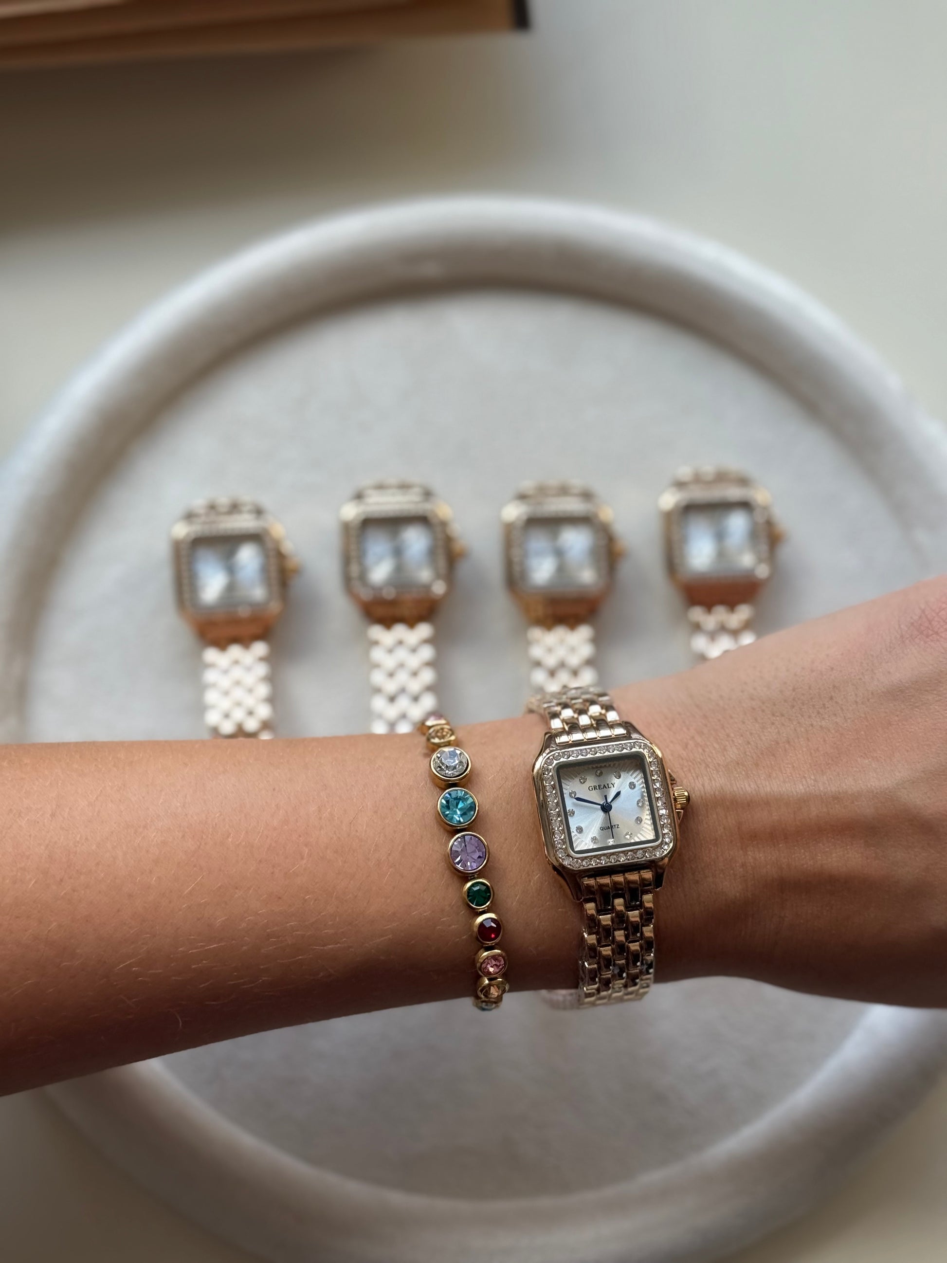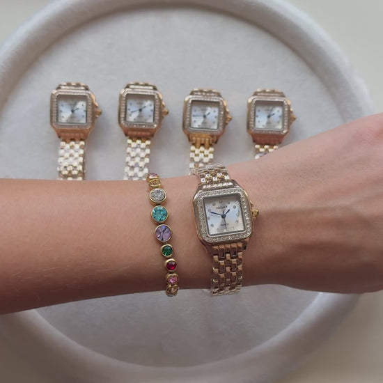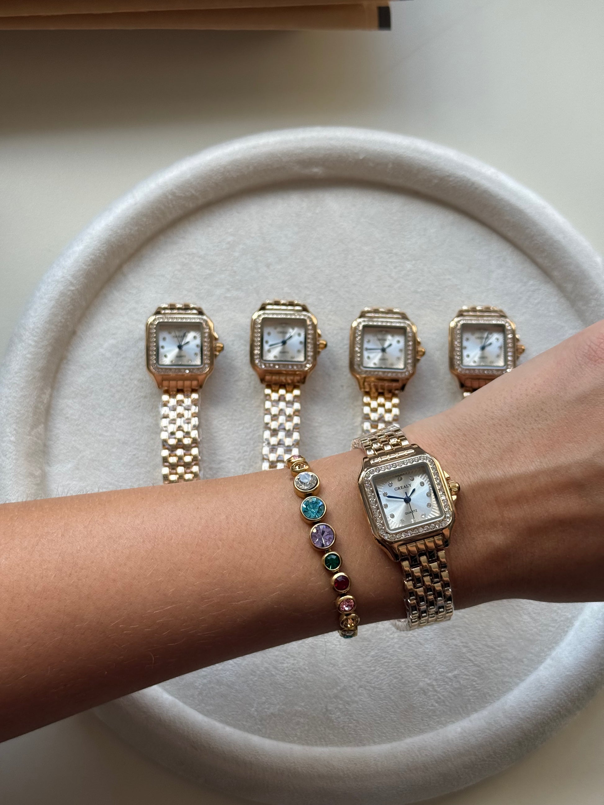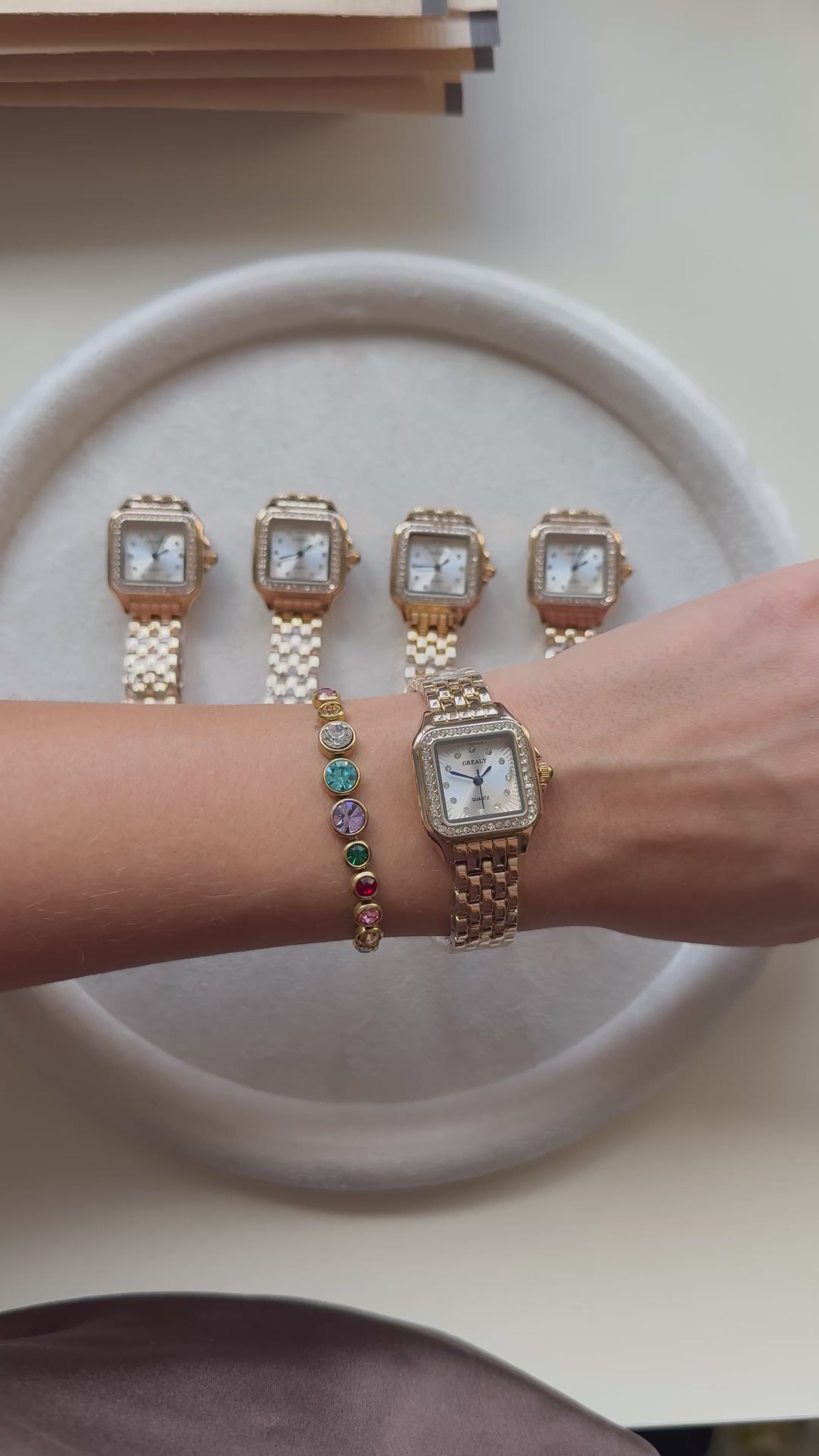 Ταιριάζει ιδανικά σε σχέδιο σαν το δικό σου — τετράγωνη κάσα, χρυσό μπρασελέ, διαχρονικό look — γιατί εκπέμπει πολυτέλεια αλλά και νοσταλγία.